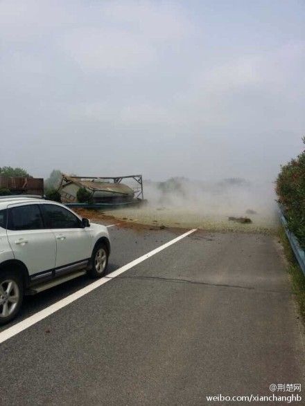 ????【漢十高速一槽罐車側(cè)翻 鹽酸泄漏】網(wǎng)友爆料:漢十高速武漢出城不遠(yuǎn),車堵長龍。來向一槽罐車側(cè)翻,導(dǎo)致出城方向整幅路面被不明液體覆蓋,白煙滾滾,氣味撲鼻!車子都不敢過啊!荊楚網(wǎng)記者最新消息:已確認(rèn)是鹽酸泄漏,特一和常青兩個(gè)消防中隊(duì)的搶險(xiǎn)人員已趕往現(xiàn)場(chǎng)。