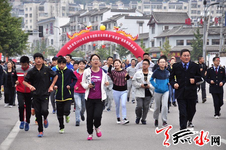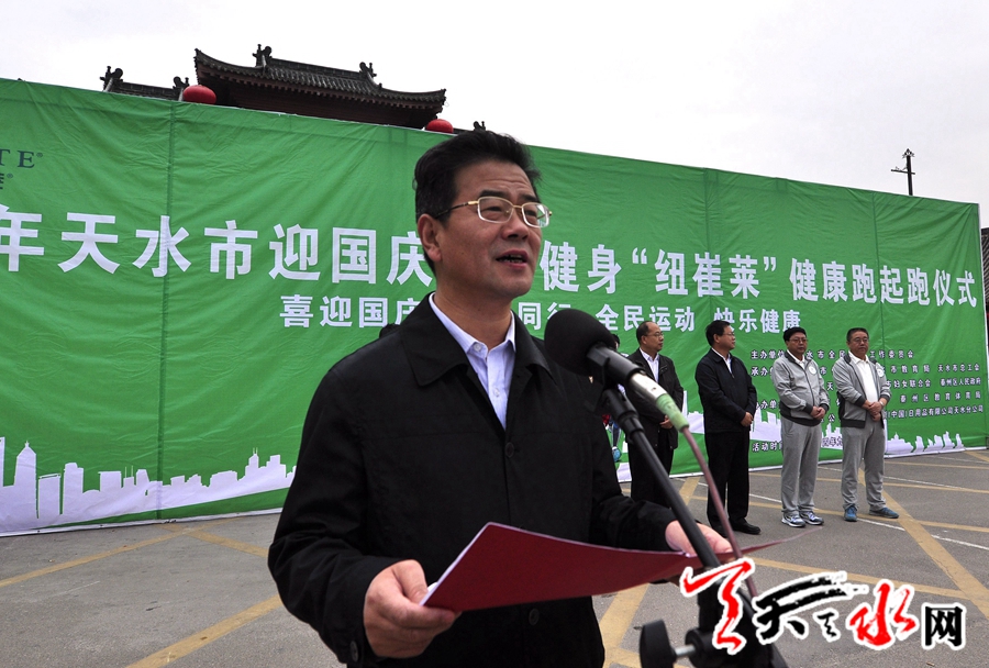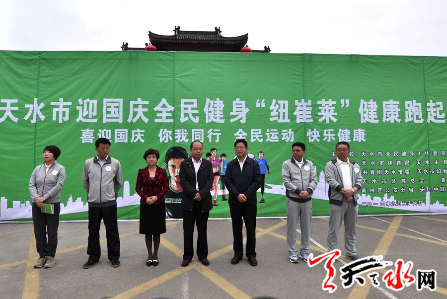 ????天天天水網(wǎng)訊(記者何永德)為喜迎國(guó)慶,全面貫徹落實(shí)《全民健身?xiàng)l例》,更好地推動(dòng)天水市全民健身活動(dòng)又好又快發(fā)展。9月27日上午,由天水市全民健身工作委員會(huì)主辦,市體育局、市教育局、市總工會(huì)、共青團(tuán)市委、市婦聯(lián)和秦州區(qū)人民政府承辦,天水市體育總會(huì)、秦州區(qū)教體局、安利(中國(guó))日用品有限公司天水分公司協(xié)辦的“迎國(guó)慶全民健身`紐崔萊'健康跑活動(dòng)”在伏羲城東牌坊前舉行。市委常委、宣傳部長(zhǎng)彭鴻嘉,副市長(zhǎng)張建杰,市政協(xié)副主席白曉玲及武警官兵和秦州區(qū)有關(guān)行政、企事業(yè)單位的干部職工、學(xué)生共5000多人參加了活動(dòng)。