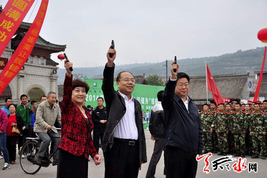 ????市委常委、宣傳部長彭鴻嘉,副市長張建杰,市政協(xié)副主席白曉玲為天水市迎國慶全民健身健康跑鳴槍發(fā)令。