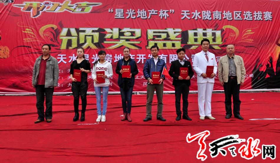 據(jù)了解,由天水日報社、天水演出公司主辦,天水星光房地產(chǎn)開發(fā)有限公司獨家冠名,天天天水網(wǎng)、《掌上天水》手機(jī)客戶端、天水盛典文化有限責(zé)任公司承辦,九釀濱河、國風(fēng)干紅贊助的此次活動,歷時兩月,經(jīng)過海選、復(fù)賽和決賽,10位佼佼者從220多位參賽選手中脫穎而出,成為人們眼中的“明日之星”。
