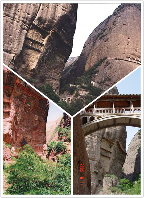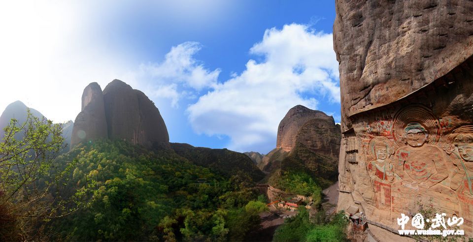 ??? 始建于十六國后秦時期,因洞窟前面雨季水線垂空,形成晶瑩飛簾,故名“水簾洞”。石窟亭宇始建于十六國時期的后秦,經(jīng)北魏、北周、隋、唐、五代、宋、元歷代修建,有水簾洞、拉稍寺、千佛洞、顯圣池等著名景觀,尤以拉稍寺、千佛洞的摩崖題記、雕塑作品、壁畫等最為珍貴。該石窟現(xiàn)列為國家級文物保護(hù)單位。