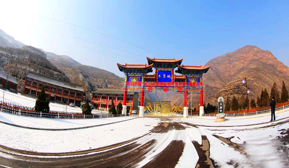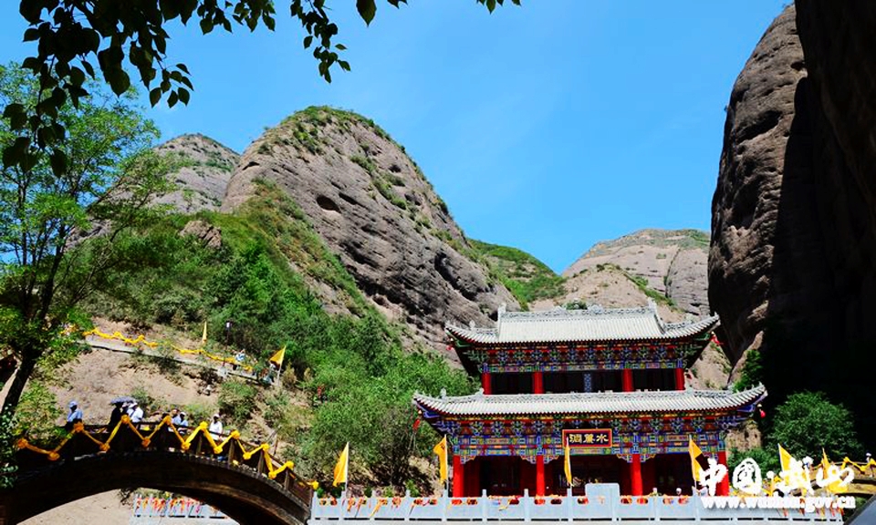 ????水簾洞在形似斧劈的試斧山東側(cè)之峭壁上,是一個約50米長,30米高,20米深的拱形自然洞穴。每當(dāng)雨季,洞頂、洞壁泉水、雨水一齊涌出,洞檐流水如注,恰似珠簾掩門,故得名水簾洞。洞內(nèi)有四圣宮、觀音寺、南殿、菩薩殿等多座建筑,各殿、臺、亭、閣依自然巖洞有開有合,錯落有致,工藝精巧。其中尤以菩薩殿最為高大華麗。該殿上下兩層,下層石壁洞中有一汪清池,清澈見底;上層橫匾大書“西山暮雨”四字,內(nèi)塑當(dāng)?shù)孛耖g傳說中的麻線娘娘;水簾洞的崖面上保存著北魏、隋、唐、元各代的佛教巨幅壁畫。整個洞內(nèi)樓臺、泉石、雕塑、畫像相輝相映,大有天然布景之趣。