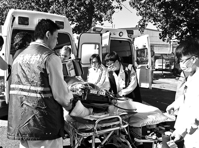 ????機(jī)場急救車和999急救車進(jìn)行“交接” 攝影/本報(bào)記者 劉珜