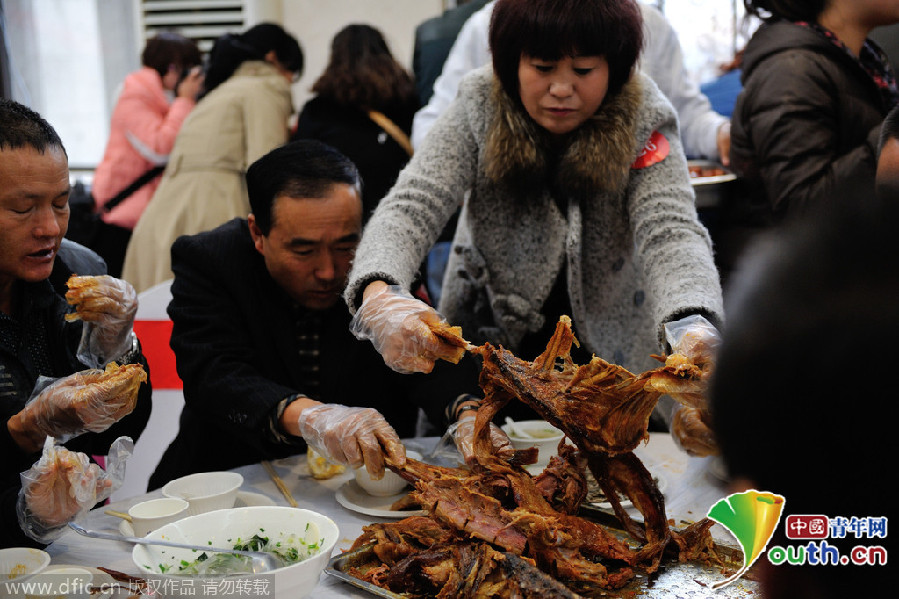 ????2014年11月1日,甘肅蘭州一開發(fā)商在售樓處免費(fèi)宴請購房者吃烤全羊,數(shù)百名購房者在售樓處享用了一頓蘭州經(jīng)典美食烤全羊大餐。(東方IC)