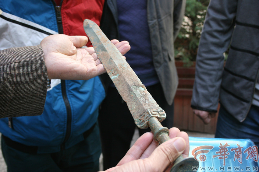 ????丹鳳縣文物部門證實,這把劍是戰(zhàn)國時期楚國青銅劍 實習記者 陳永輝 攝