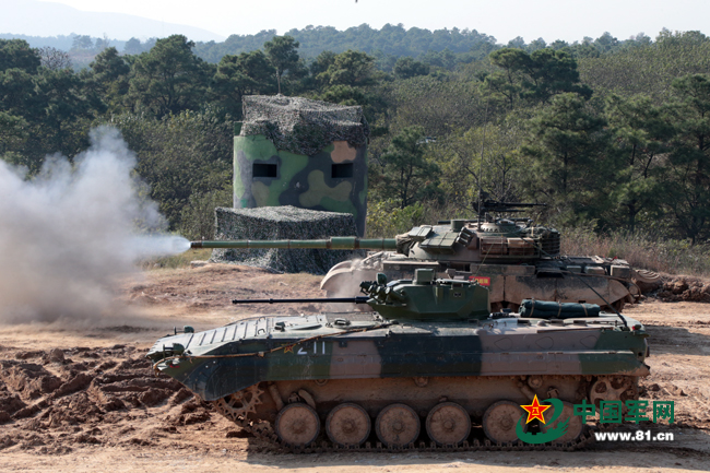 ????坦克和步戰(zhàn)車在發(fā)射陣地對(duì)敵實(shí)施射擊。