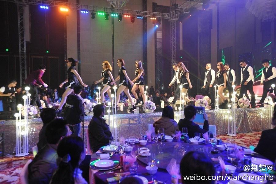 ????據(jù)荊楚網(wǎng)微博報(bào)道,11月8日,武漢洲際酒店現(xiàn)豪華跑車婚禮。法拉利、瑪莎拉蒂、奧迪等五輛豪華跑車分布婚禮宴會(huì)大廳內(nèi)外,其中一輛粉色法拉利開上婚禮主舞臺(tái),配合新人與伴娘、伴郎們合演的歌舞秀。圖片來源:荊楚網(wǎng)微博