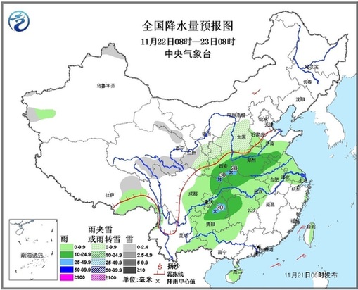 中央氣象臺(tái)11月21日發(fā)布:未來三天全國(guó)天氣預(yù)報(bào)
