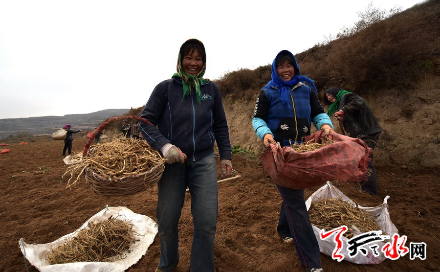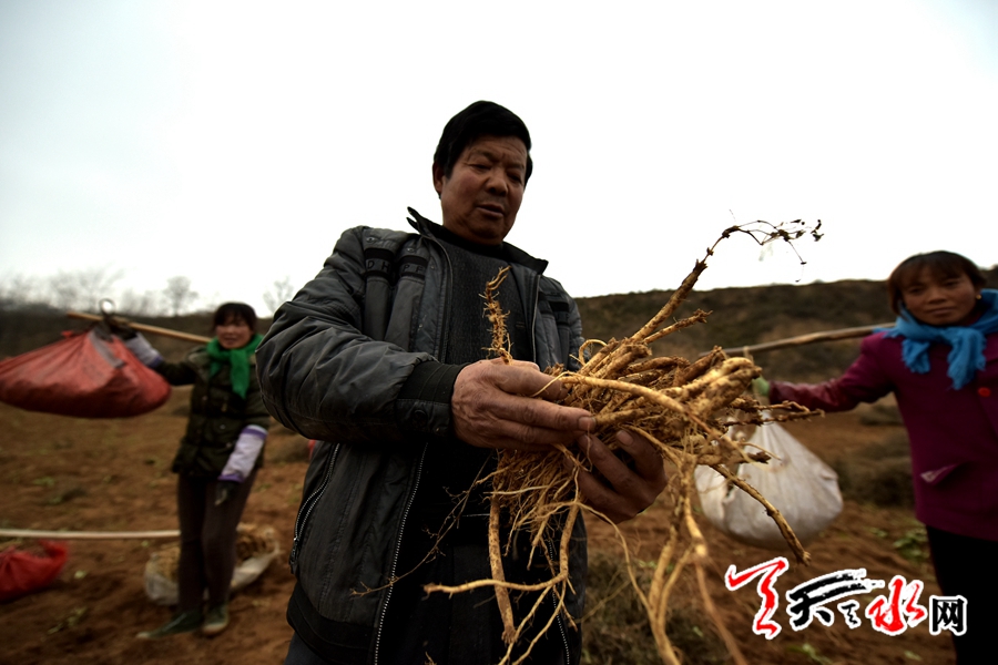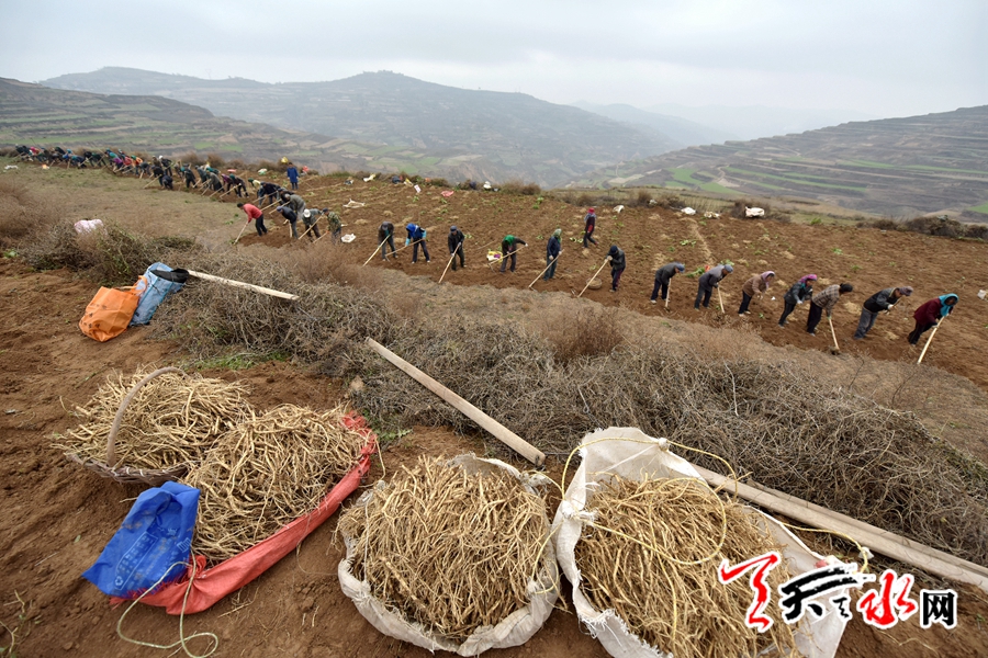 天天天水網(wǎng)訊(記者何永德)11月21日,時值初冬,麥積區(qū)渭北高寒山區(qū)的五龍鄉(xiāng)中藥種植基地采收黨參的熱鬧場面卻與初冬的寒冷形成顯明的對比,近百村民在這里一字排開正在采收黨參。