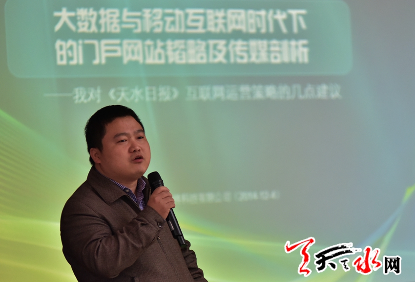 ????當天的協(xié)議簽署儀式上,上海逐浪軟件科技有限公司總經(jīng)理汪洋為天水日報社全體職工近200人作了題為《大數(shù)據(jù)與移動互聯(lián)網(wǎng)時代下的門戶網(wǎng)站韜略及傳媒剖析》的專題講座。?