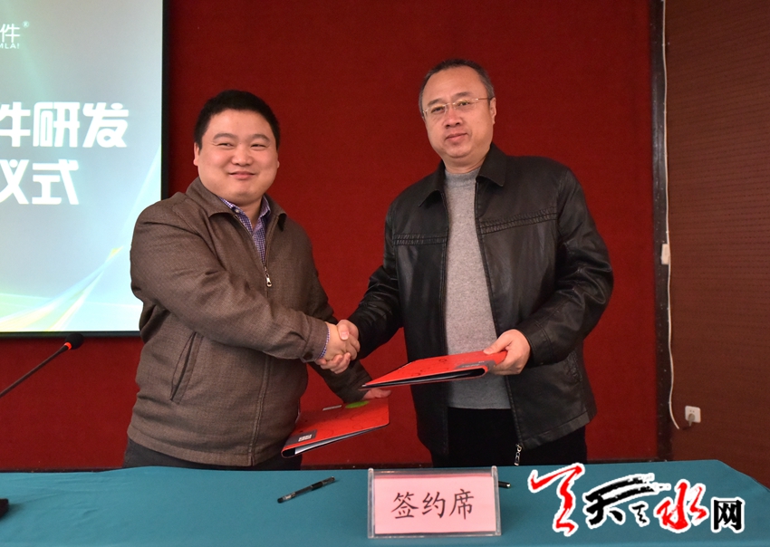 (天水日報社副總編輯豐藝明與上海逐浪軟件科技有限公司總經(jīng)理汪洋簽署新媒體創(chuàng)新軟件研發(fā)運用戰(zhàn)略合作協(xié)議)