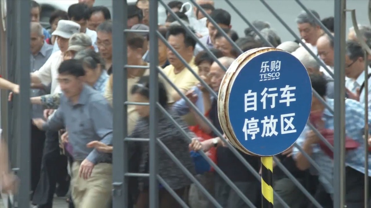????2014年12月18日報道,這組圖片由兩名外國人Jonathan Meador和Jonathon Lim從14樓高層陽臺拍攝記錄,它們展示了不同季節(jié)上海一家樂購超市門口,大批年齡在60歲以上的老人早早在店門口排隊等候,待開門后蜂擁擠進(jìn)超市的場景。