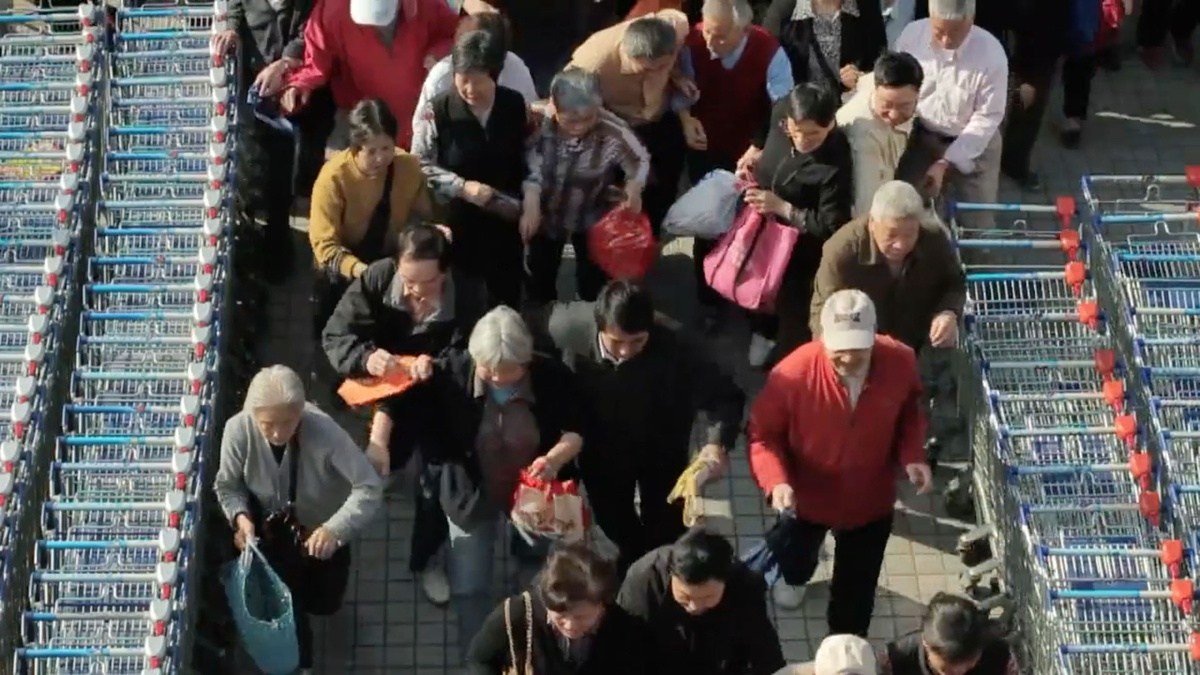????2014年12月18日?qǐng)?bào)道,這組圖片由兩名外國(guó)人Jonathan Meador和Jonathon Lim從14樓高層陽臺(tái)拍攝記錄,它們展示了不同季節(jié)上海一家樂購超市門口,大批年齡在60歲以上的老人早早在店門口排隊(duì)等候,待開門后蜂擁擠進(jìn)超市的場(chǎng)景。