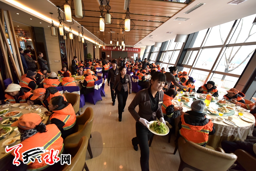 天水環(huán)衛(wèi)工人首次集體免費(fèi)用大餐