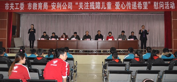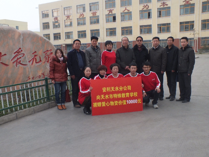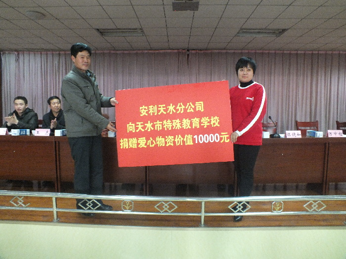 ???? 天天天水網(wǎng)訊 2015年元旦來臨之際,天水市關(guān)工委、市教育局、安利天水分公司員工攜志愿者于12月25日來到了天水市特殊教育學(xué)校舉行“關(guān)注殘障兒童 愛心傳遞希望”慰問活動(dòng)?;顒?dòng)中,安利天水分公司為天水特殊教育學(xué)校捐贈(zèng)了價(jià)值10000元的愛心物資,為殘障兒童送去了冬日的關(guān)愛和溫暖、讓孩子們感受到社會(huì)對(duì)他們的關(guān)懷。