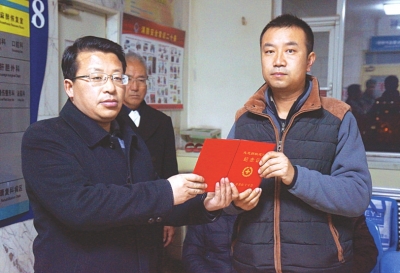 ????老人親屬接過遺體捐贈證書