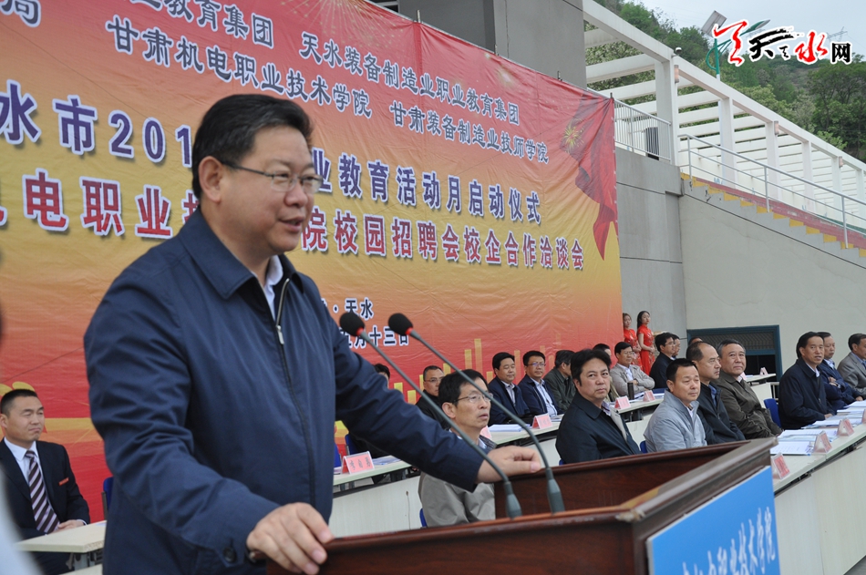 ????天天天水網(wǎng)13日9時訊 【記者 楊璟】5月13日上午9時,天水市2016年職業(yè)教育宣傳月啟動儀式暨甘肅機電職業(yè)技術(shù)學(xué)院校園招聘會校企合作洽談會在甘肅機電職業(yè)技術(shù)學(xué)院舉行。副市長張建杰宣布活動啟動。