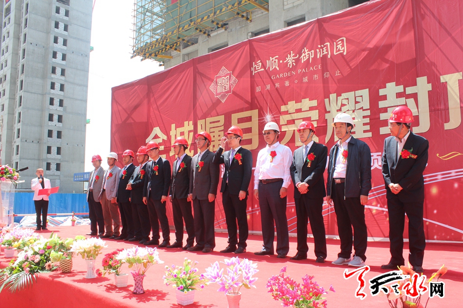 ???? 天天天水網(wǎng)訊 ?5月16日,恒順·紫御潤(rùn)園圓滿舉行了一期全部工程封頂儀式。恒順地產(chǎn)、寶雞二建、天水永生、甘肅五建及監(jiān)理單位等開發(fā)建設(shè)相關(guān)領(lǐng)導(dǎo),與天水主流媒體在恒順·紫御潤(rùn)園共聚一堂,一起喜迎項(xiàng)目一期全部工程的正式封頂。