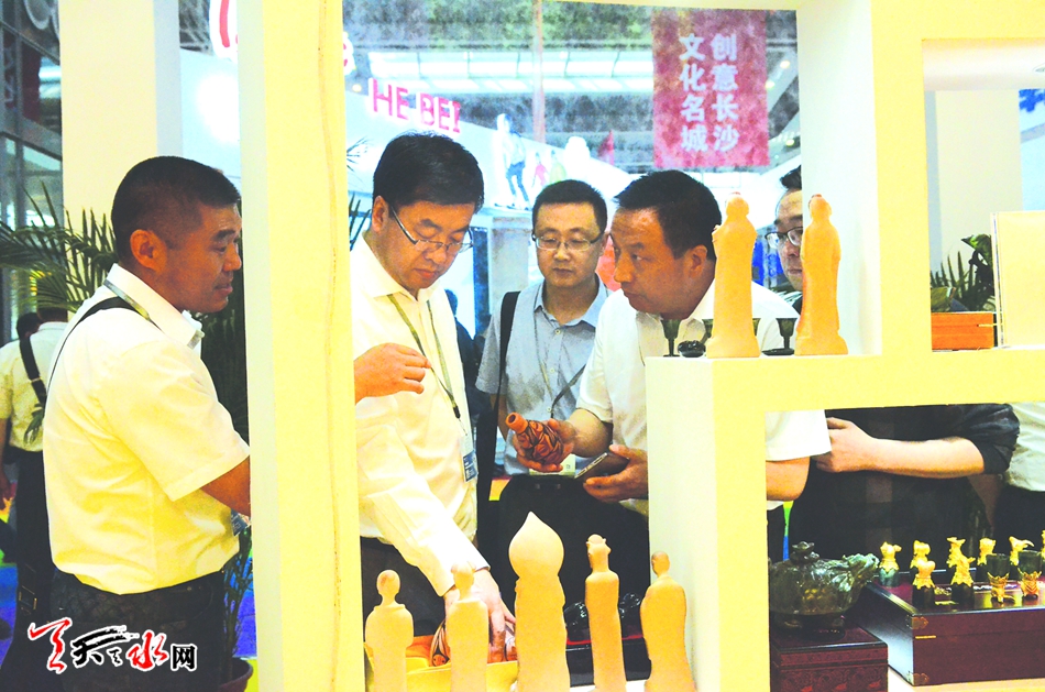 ????走進(jìn)文博會(huì)甘肅展館,天水展臺(tái)展出的鴛鴦?dòng)?、雕漆及陶文化產(chǎn)品吸引了眾多參展商和觀眾的目光。鴛鴦?dòng)癃?dú)具特色的粗狂紋理,帶著西北風(fēng)沙的蒼涼在觀眾眼中別具一格;“東方微笑”小沙彌,其溫文爾雅、富有禪意的表情展示著麥積山石窟文化一隅;運(yùn)用傳統(tǒng)拶金技藝制成的黃河雕漆產(chǎn)品工藝精湛,美輪美奐。天水豐富的文化旅游特色產(chǎn)品,閃耀著傳統(tǒng)文化與現(xiàn)代工藝相結(jié)合的智慧之光,讓海內(nèi)外觀眾更加直觀、全面地體會(huì)到我市工藝品的獨(dú)特魅力?!皼]想到,甘肅天水文化底蘊(yùn)這么深厚,玉器、雕漆產(chǎn)品這么精致,有創(chuàng)意,小沙彌惟妙惟肖,親近可愛?!鼻皝韰⒂^的嘉賓和觀眾情不自禁地發(fā)出這樣的贊嘆。