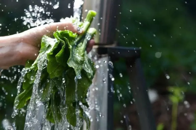 葉菜單掰下來(lái)后用流水沖洗,因葉片部位的農(nóng)藥會(huì)順勢(shì)流到葉片根部,所以根部殘留農(nóng)藥較多。