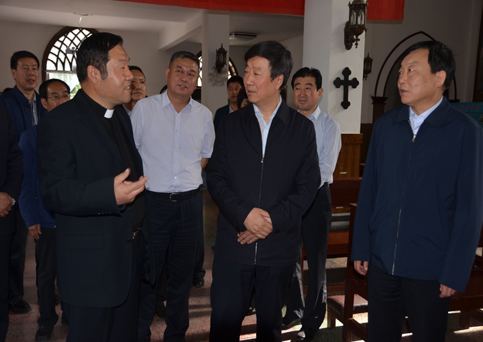 ????在秦州區(qū)東關(guān)天主堂等宗教場(chǎng)所調(diào)研時(shí),王璽玉強(qiáng)調(diào),要認(rèn)真學(xué)習(xí)全國(guó)宗教工作會(huì)議精神,深入貫徹黨的宗教方針政策,堅(jiān)持我國(guó)宗教中國(guó)化方向,完善管理措施,引導(dǎo)宗教界人士和廣大信教群眾為全省脫貧攻堅(jiān)和小康社會(huì)建設(shè)作出新貢獻(xiàn)。