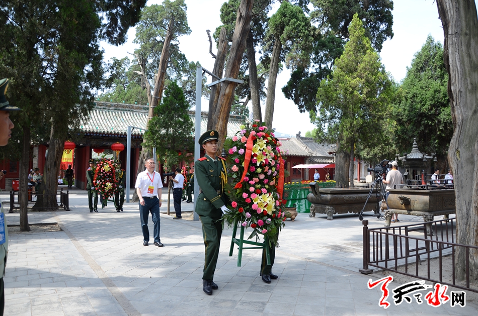 ????預(yù)演結(jié)束后,王銳、柴金祥、楊維俊、宋尚有等市領(lǐng)導(dǎo)依次為伏羲圣像敬獻(xiàn)了花籃。