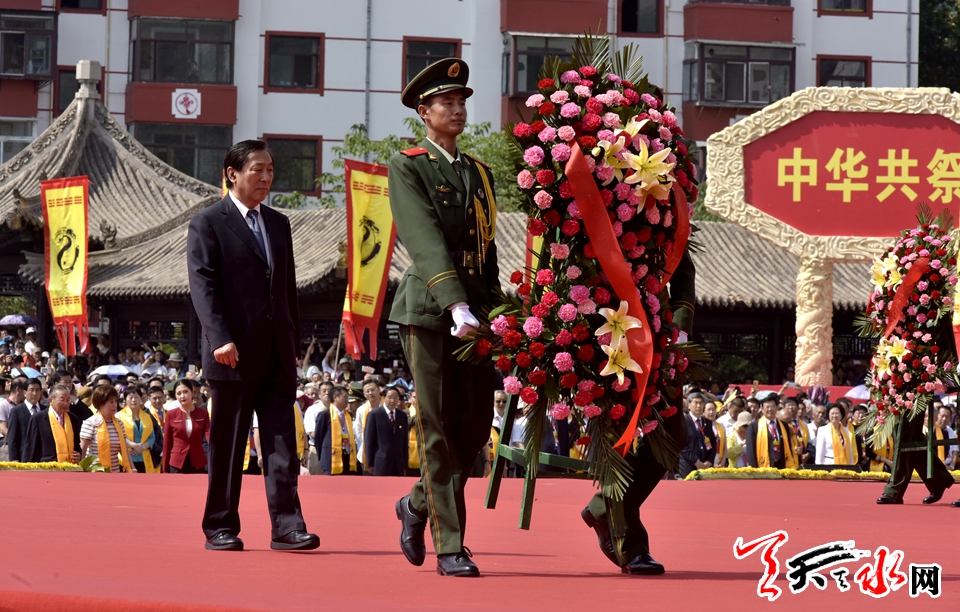 ?2016(丙申)年公祭中華人文始祖伏羲大典現(xiàn)場敬獻(xiàn)花籃