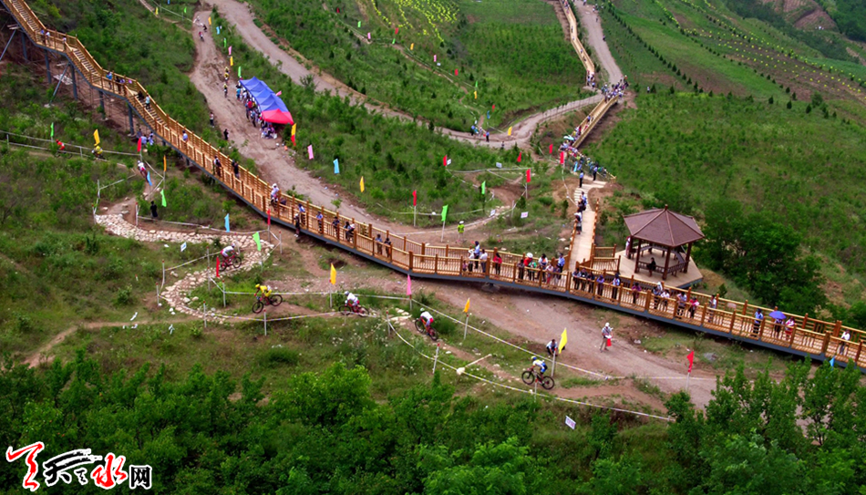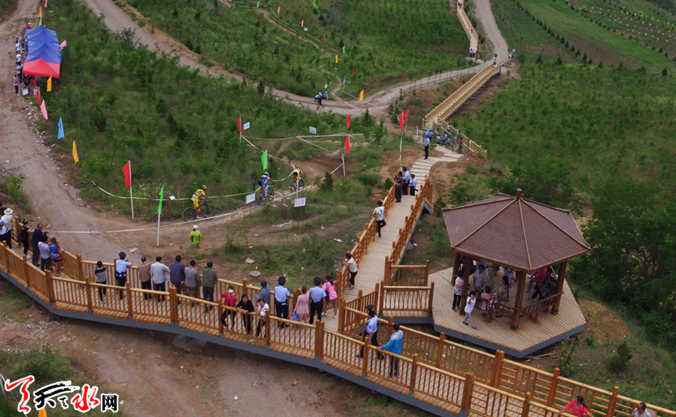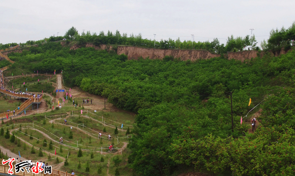 ????本次比賽場地位于麥積區(qū)甘泉鎮(zhèn)翠山梁西坡,國家山地自行車訓(xùn)練基地,在穎川河流域綜合開發(fā)區(qū)內(nèi),地處麥積主城區(qū)、天水國家級經(jīng)濟(jì)技術(shù)開發(fā)區(qū)與麥積山5A級風(fēng)景區(qū)三大功能板塊之間,區(qū)位優(yōu)勢獨特,景色秀美。翠山梁東西兩側(cè)分布的東柯河、穎川河流域,既是全市文化旅游資源聚集區(qū),也是我市城市拓展的最佳承載區(qū)。值得一提的是,在成功舉辦2015年全國山地自行車錦標(biāo)賽之后,今年麥積區(qū)按照相關(guān)技術(shù)要求和標(biāo)準(zhǔn),對賽道做了進(jìn)一步改建和完善,同時新建了觀賽健身步道。該步道依托翠山自然山體,由南向北綿延,與賽道并行,全長1.45公里,主體為鋼結(jié)構(gòu)架設(shè),鋪設(shè)防腐木地板。這也是全國第一家景觀步道和山地賽道并行建成的專業(yè)賽道,極大地提高了比賽的觀賞性和趣味性,成為今年本屆賽事的一大亮點,也為今后舉辦更高規(guī)格的賽事活動打下了堅實基礎(chǔ)。