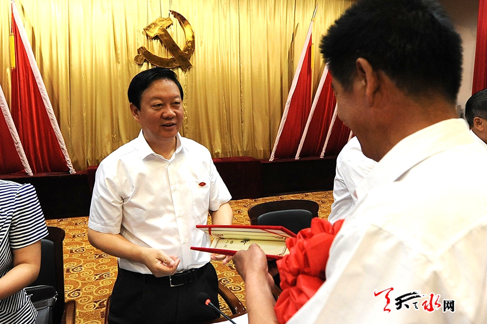 ????天天天水網(wǎng)訊【記者王曉馨?周文濤】6月28日上午,全市優(yōu)秀共產(chǎn)黨員優(yōu)秀黨務工作者先進基層黨組織表彰大會在天水迎賓館召開。天水市委書記王銳出席會議并強調(diào),全市各級黨組織和廣大黨員要結(jié)合正在開展的“兩學一做”學習教育,學比先進、爭做先進,立足本職、建功立業(yè),以實際行動為黨旗增光添彩。?
