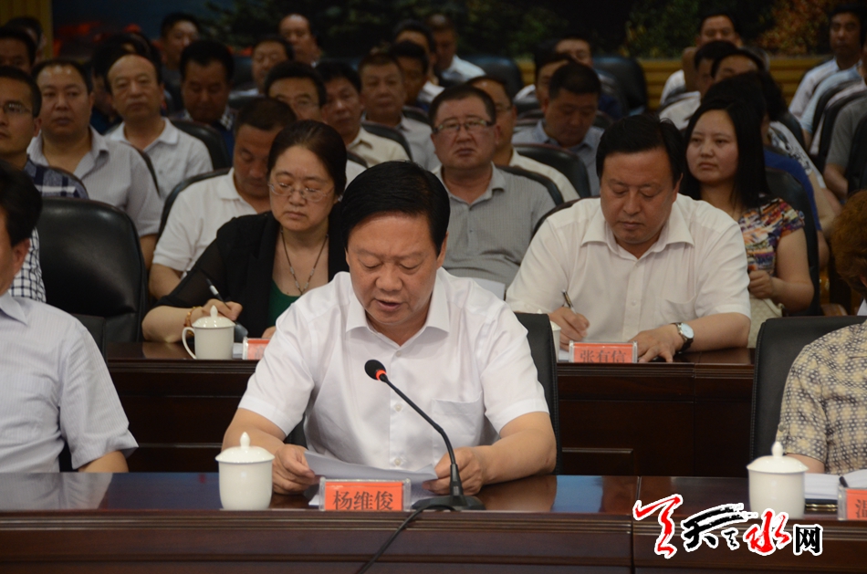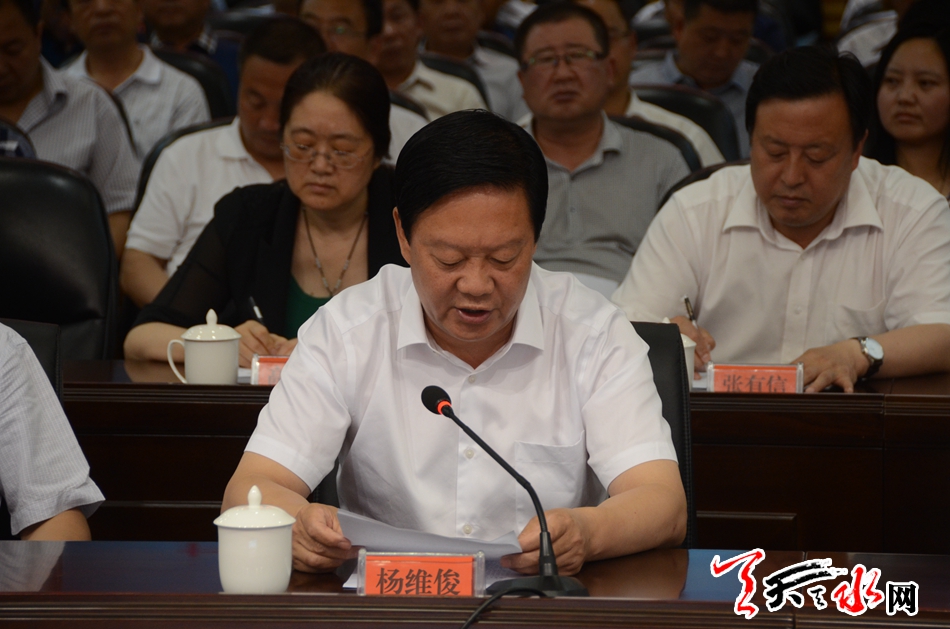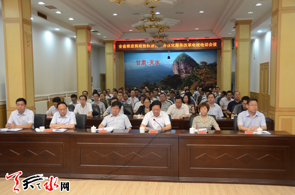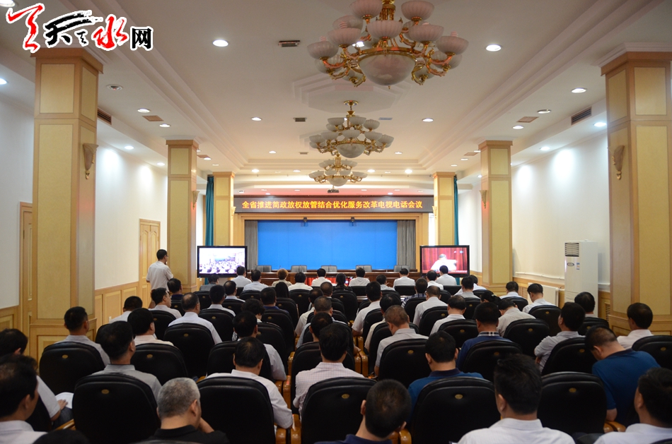 ????天天天水網(wǎng)訊(記者郝勤學(xué))6月29日,甘肅省政府召開全省簡政放權(quán)放管結(jié)合優(yōu)化服務(wù)改革電視電話會議,就深入推進(jìn)全省“放管服”改革各項工作,建設(shè)人民滿意的服務(wù)型政府進(jìn)行安排部署。天水市委副書記、市長楊維俊在天水分會場參加會議并代表天水市政府作交流發(fā)言。