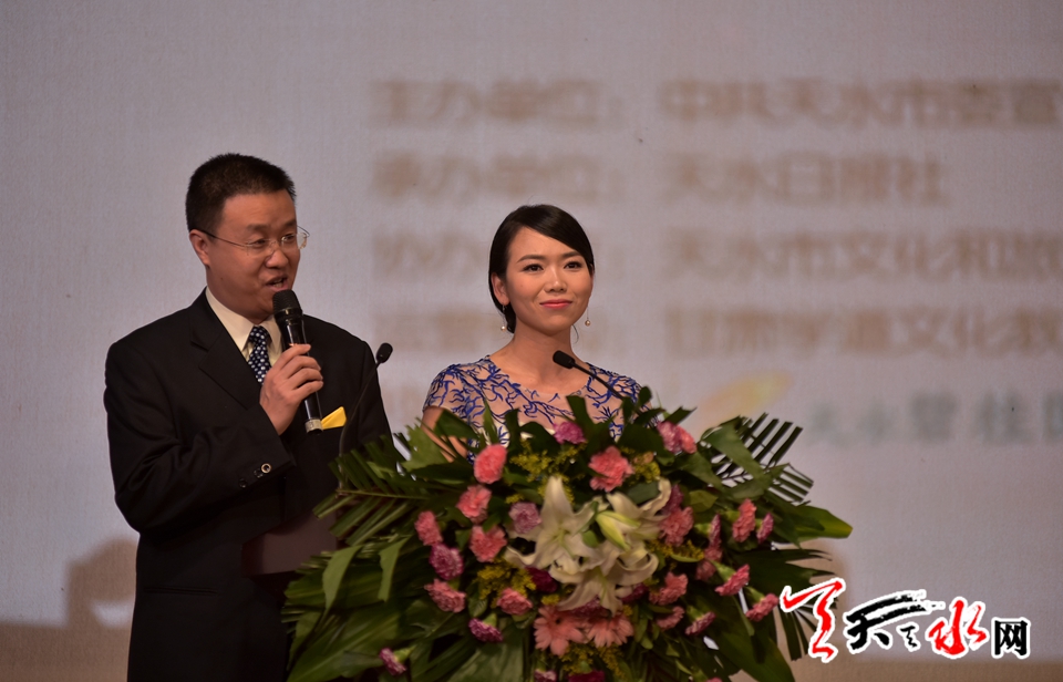 ??? 中國小說學(xué)會會長、著名評論家、首屆“中國天水?李杜詩歌節(jié)”顧問雷達(dá)為首屆“中國天水·李杜詩歌節(jié)”——“貢獻(xiàn)獎”開獎,獲獎作者是雷平陽,獲獎作品:詩集《山水課》;西娃,獲獎作品:詩集《我把自己分成碎片發(fā)給你》。中共天水市委常委、組織部長、宣傳部長王正茂,市委常委、副市長李曉東為獲獎?wù)哳C獎。