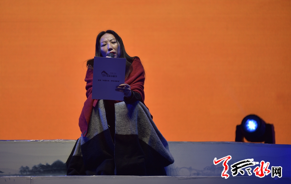 首屆“中國天水·李杜詩歌節(jié)”特別獎獲獎?wù)邨顣詵|朗誦《相信未來》