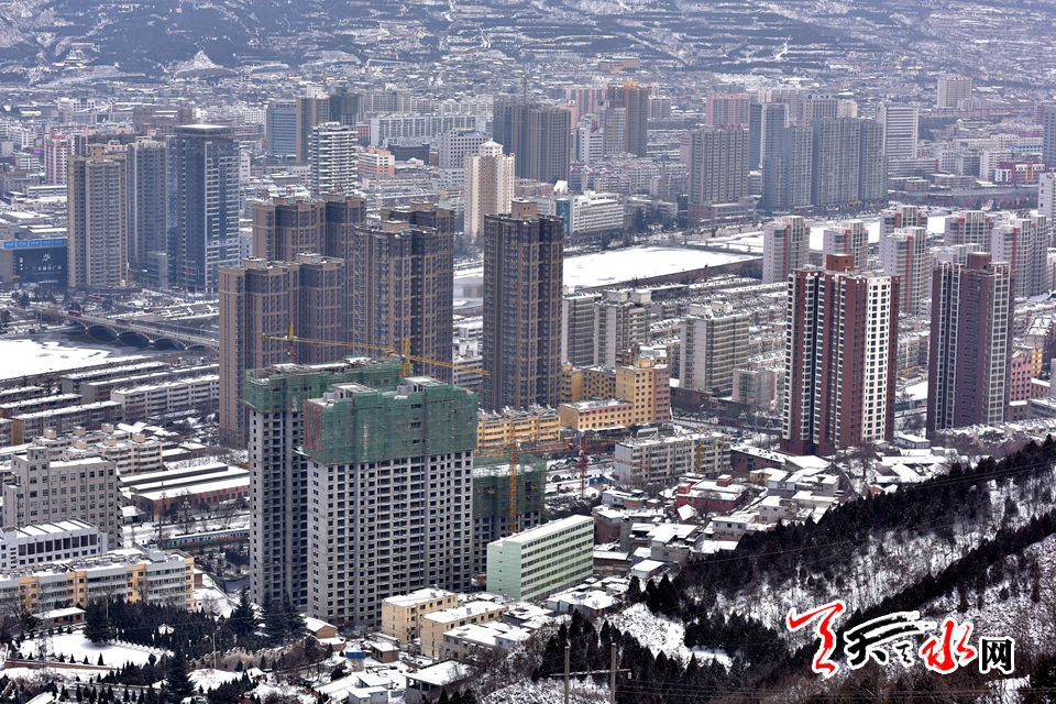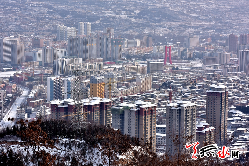 ????天水之間只要有雪在飛舞,其詩(shī)意畫韻便會(huì)油然而生,富涵詩(shī)意的天水,地名本身就是一首靈動(dòng)的詩(shī),一幅古意與時(shí)尚輝映的畫,立于南山之巔,目力所極,在感嘆天水日新月異建設(shè)發(fā)展之時(shí),其呈現(xiàn)的意境更會(huì)讓觀者心生向往?!把┞湓诖蟮貫车纳桔昀?,八千年前就這樣落下。雪落在伏羲廟的屋脊上,伏羲女媧的肩頭一片白”王正茂在其詩(shī)作《雪在下》中以博大的思維和穿越時(shí)空的想象,在天水新年的首場(chǎng)降雪中寫意出天水厚重的文化意境。