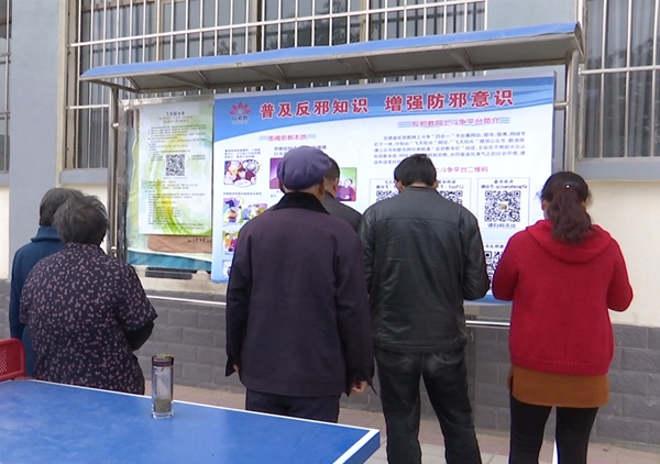 ????本次活動,共發(fā)放反邪教宣傳彩頁3000余份,展出宣傳掛圖16幅,懸掛宣傳標語6條、遞送新春對聯(lián)1000余副。通過此次宣傳活動,讓廣大群眾深入了解和深刻認識到了邪教組織的真面目,進一步增強了群眾識邪、防邪、拒邪的意識和能力,打牢了農(nóng)村抵御邪教的思想防線,為即將來臨的新春佳節(jié)營造了一個文明、祥和、歡樂的社會氛圍。