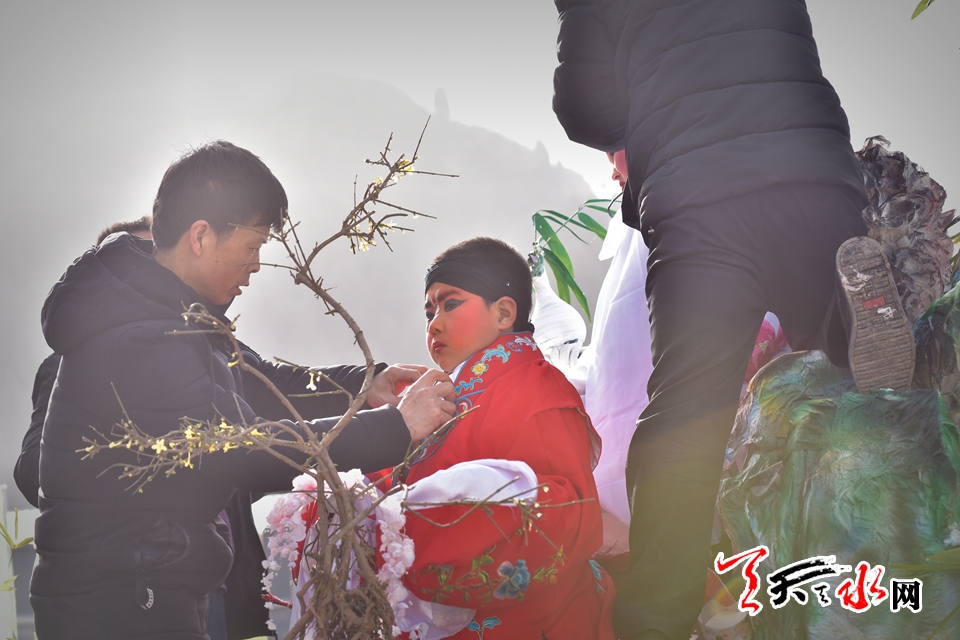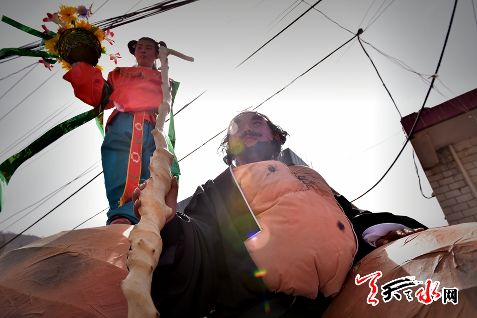 ????社火表演,在西北地區(qū)多稱為“耍煙歌”,這是黃土高原上獨(dú)有的民俗文化,是幸勤了一年的人們,給予生活的美好的期許和歡快釋放。街亭古鎮(zhèn)人的游街“煙歌”,無論是形式還是內(nèi)容都體現(xiàn)著這種直接和純粹。