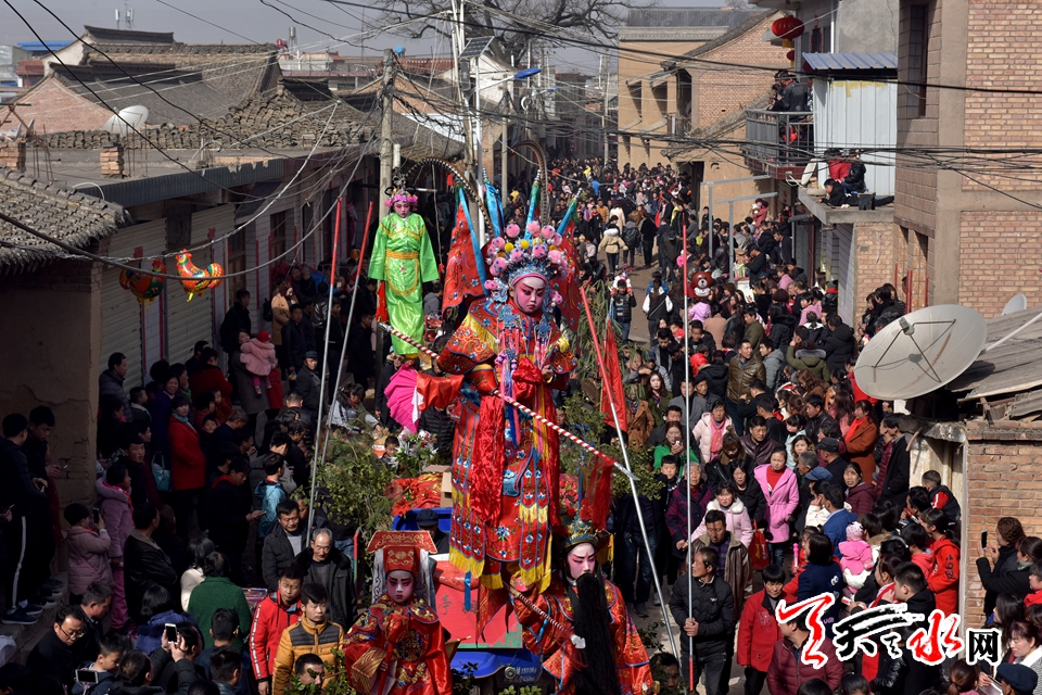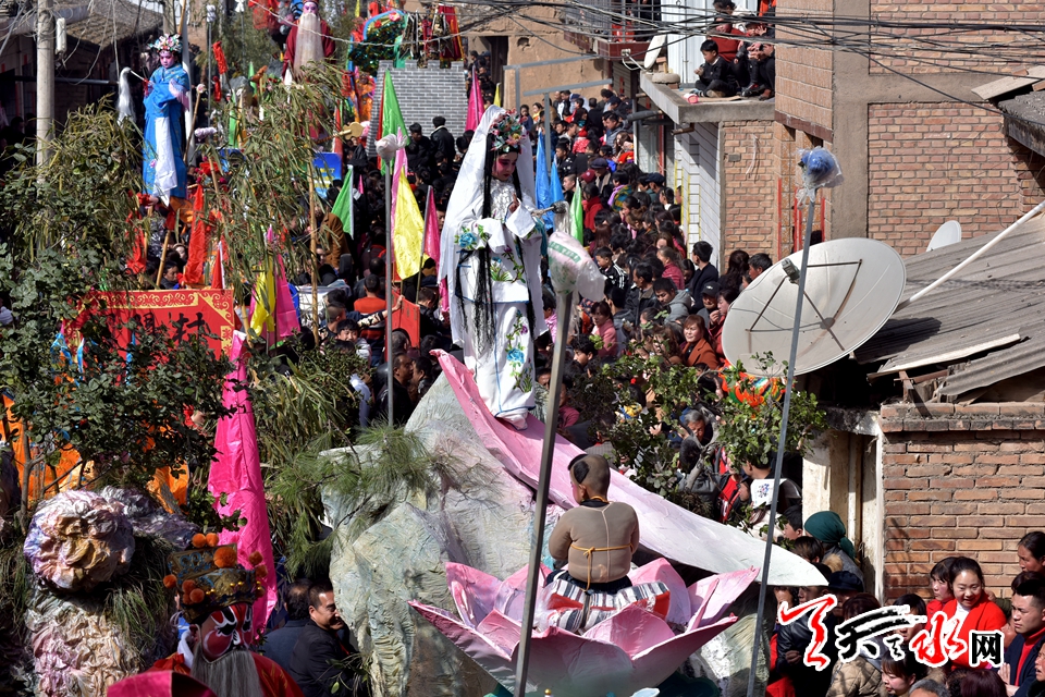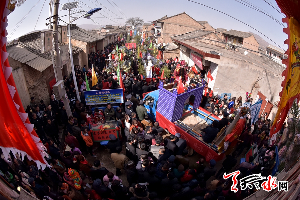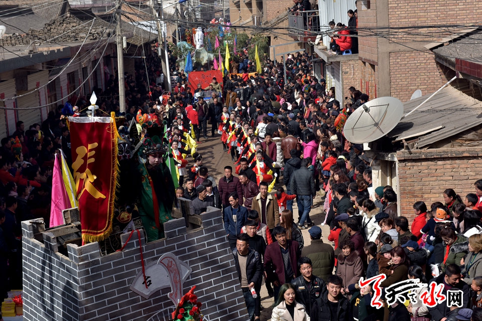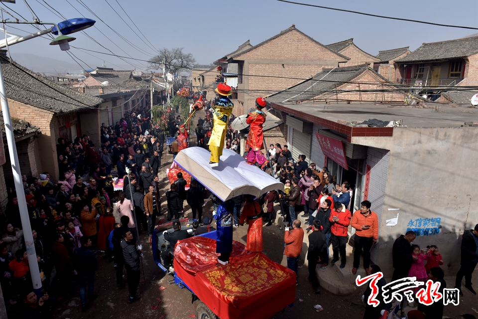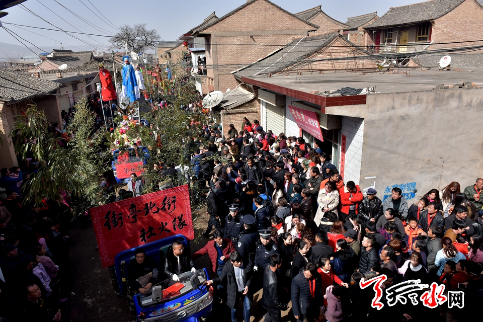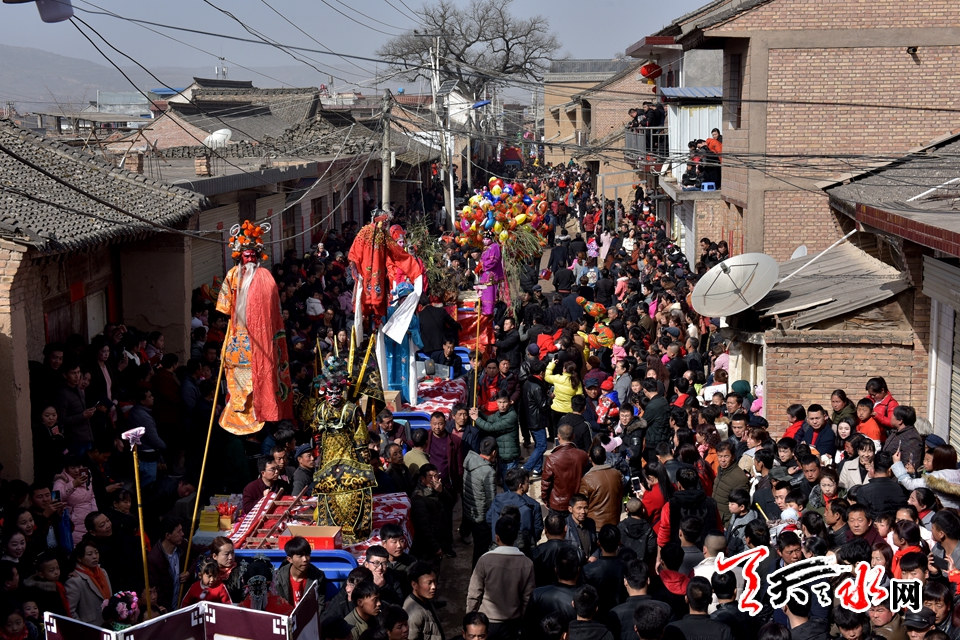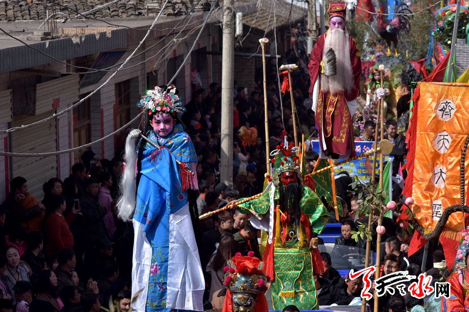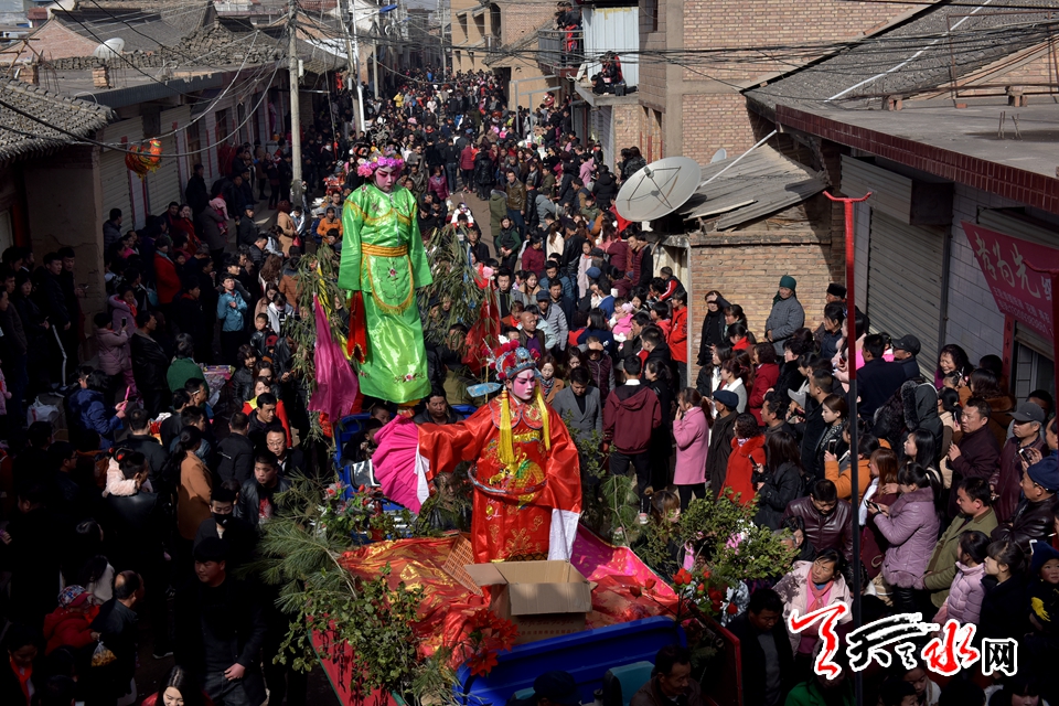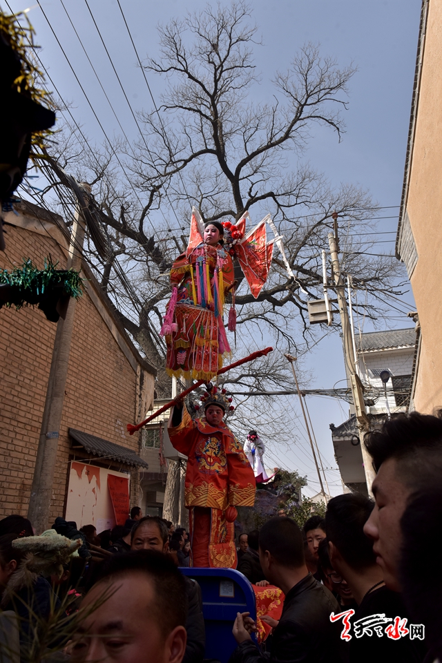 ????正月初九的麥積區(qū)街亭古鎮(zhèn),同往年一樣迎來了一年中最為熱鬧的日子,陣勢(shì)浩大的高臺(tái)社火表演把這個(gè)平日里頗有書香氣韻的古鎮(zhèn)變成了街亭人的狂歡節(jié)。