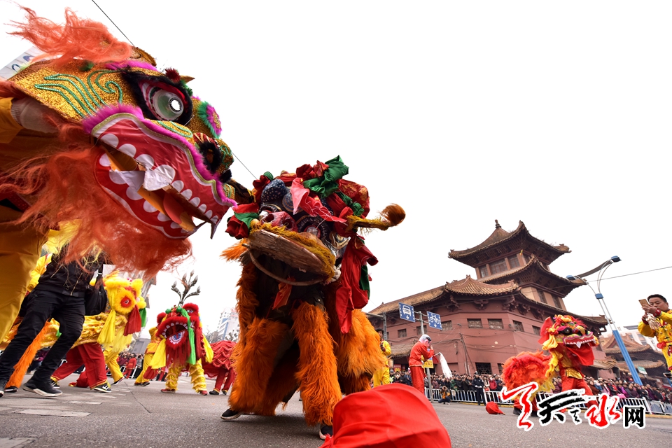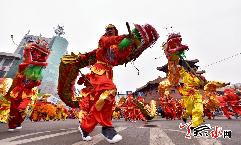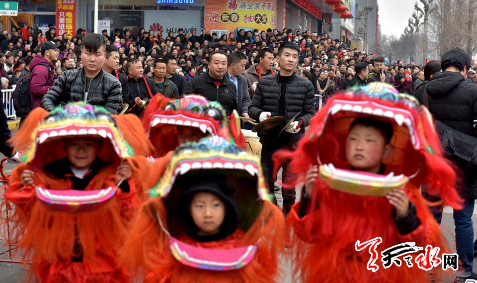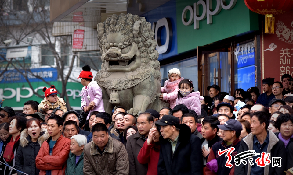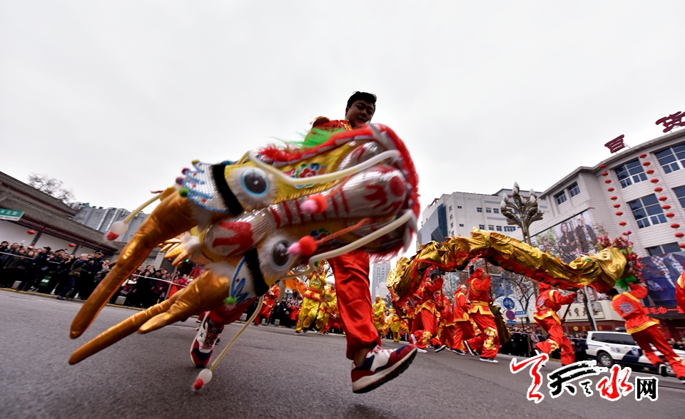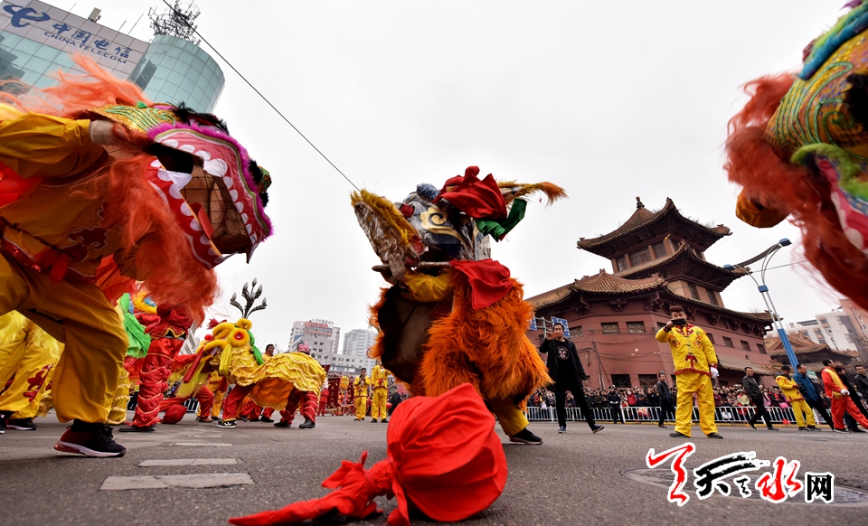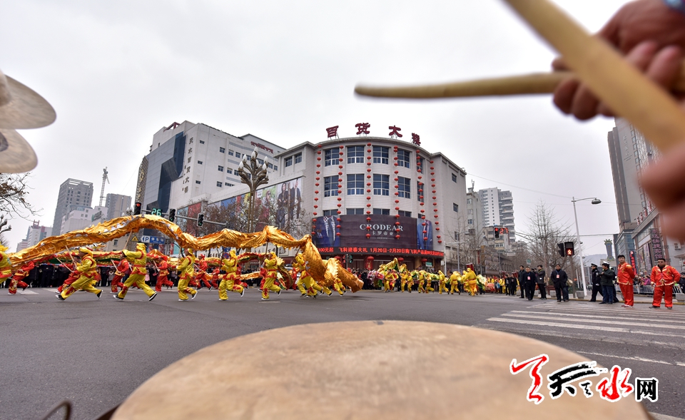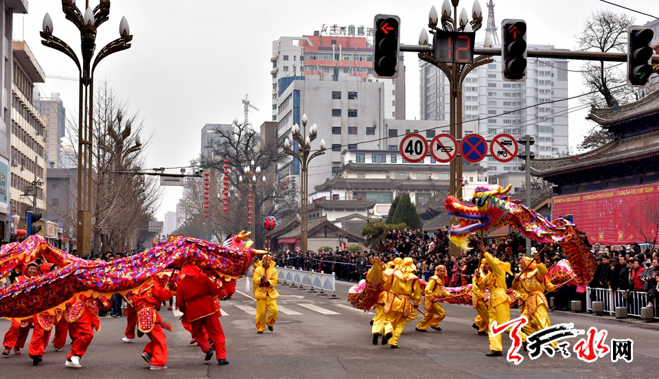 ????同往年一樣,在這個(gè)讓全城居民傾巢而出,感受正月鬧新春的日子里,從城區(qū)百貨大樓前十字路口,向西至龍城廣場(chǎng)北口,一直向西至伏羲城東牌坊前,人潮涌動(dòng),鑼鼓震天,龍躍獅舞,秧歌歡騰,夾板聲脆,勾勒出慶新春的年俗盛景,更訴說著“羲皇故里”新時(shí)代的新面貌。