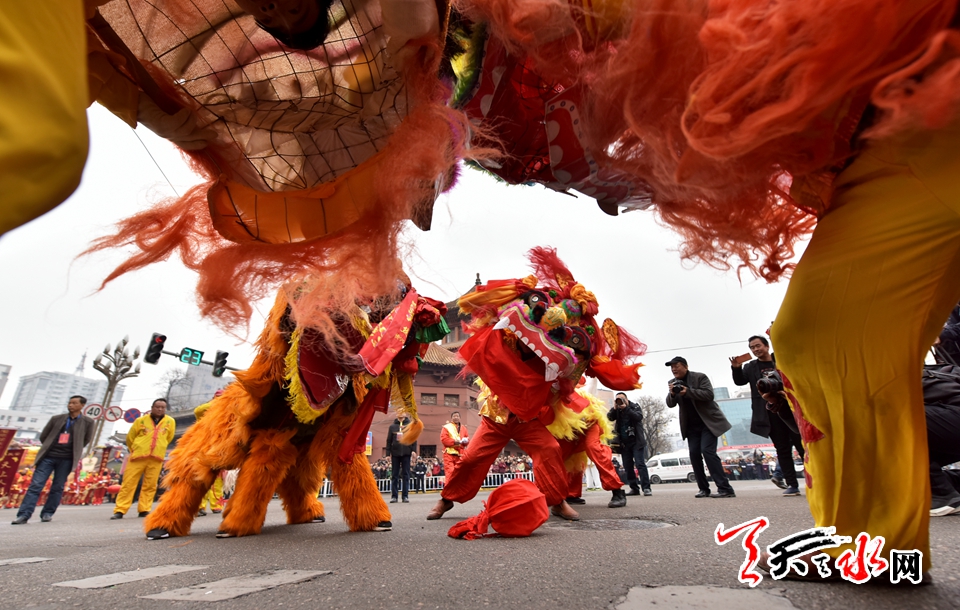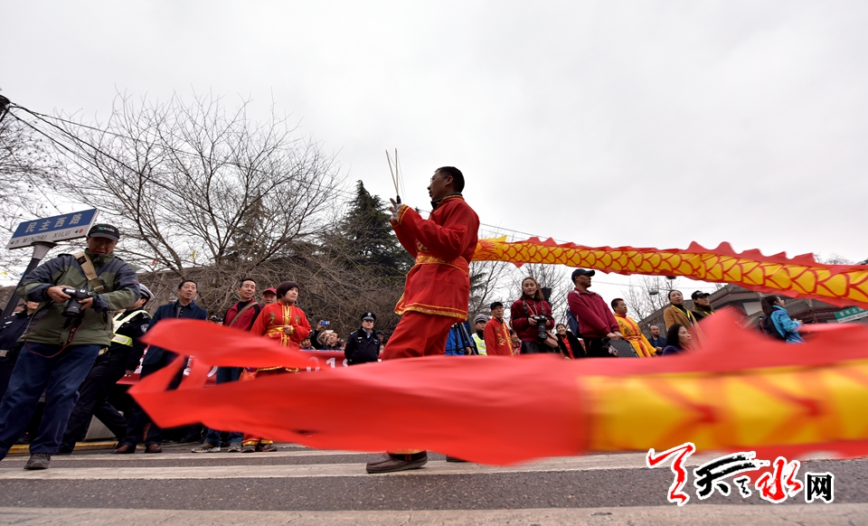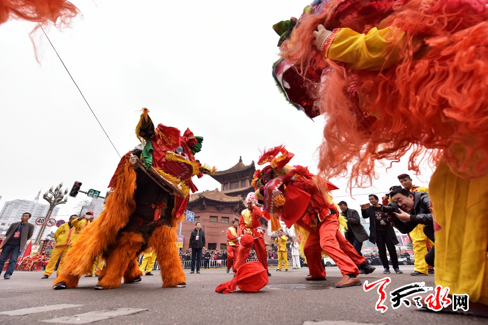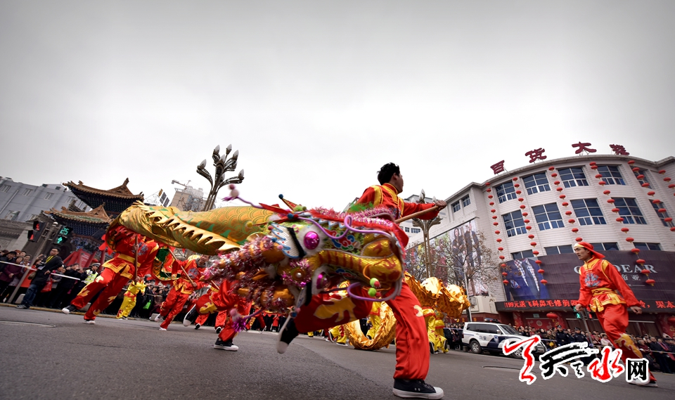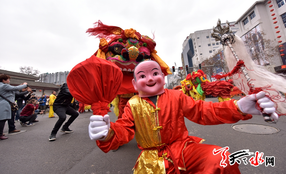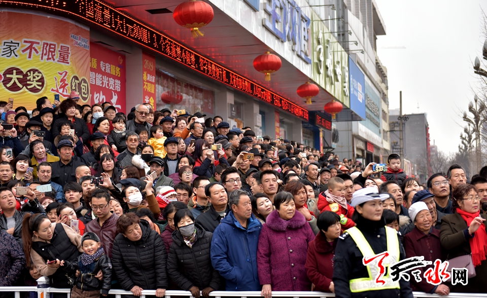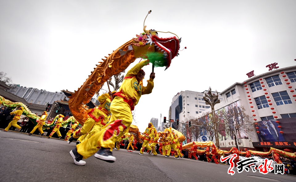 ????同往年一樣,在這個(gè)讓全城居民傾巢而出,感受正月鬧新春的日子里,從城區(qū)百貨大樓前十字路口,向西至龍城廣場(chǎng)北口,一直向西至伏羲城東牌坊前,人潮涌動(dòng),鑼鼓震天,龍躍獅舞,秧歌歡騰,夾板聲脆,勾勒出慶新春的年俗盛景,更訴說著“羲皇故里”新時(shí)代的新面貌。