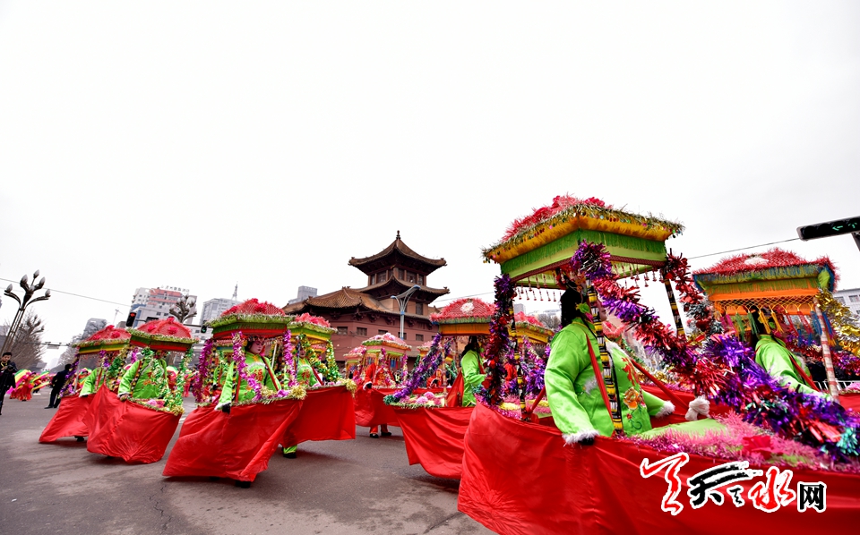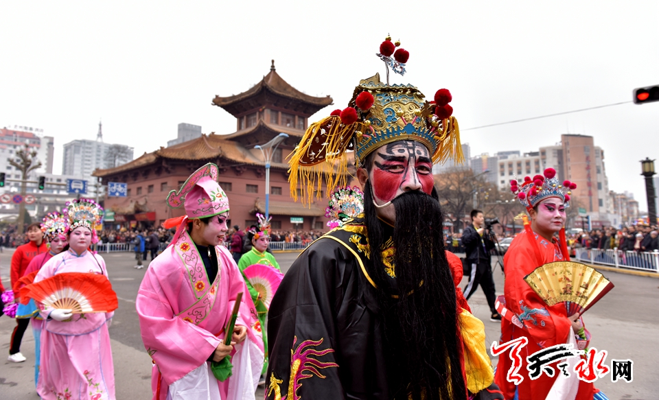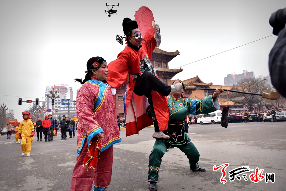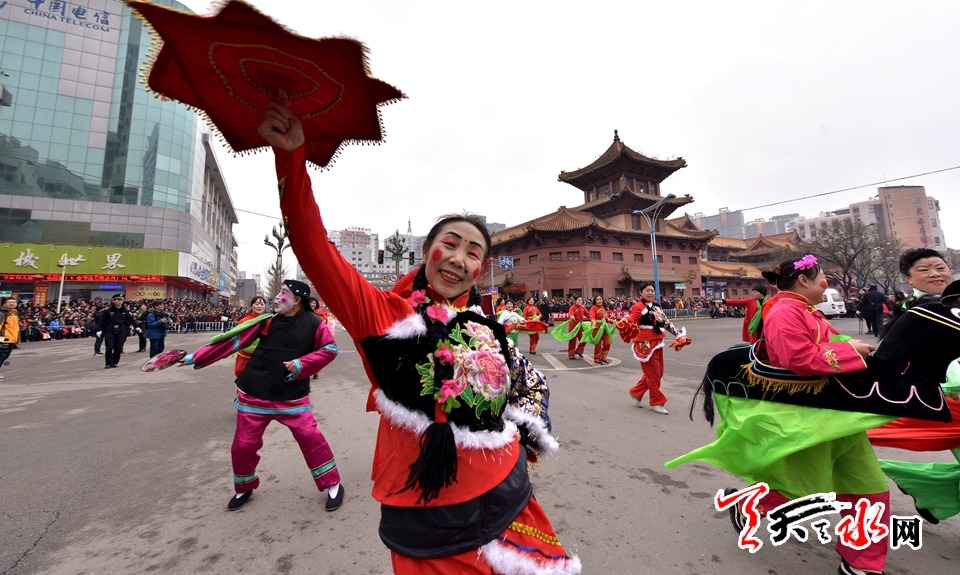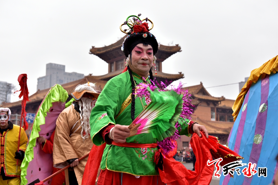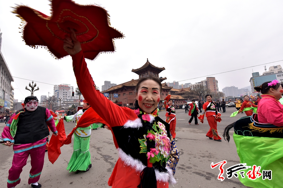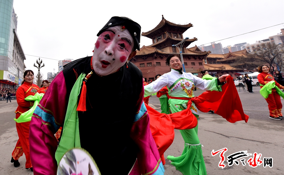 ????2018年的正月十二,古城秦州經(jīng)春雨沐浴后,以鑼鼓喧天的喜悅,把戊戌狗年的歡騰推向迎接新春的高潮。今天的秦州成了歡樂的海洋。