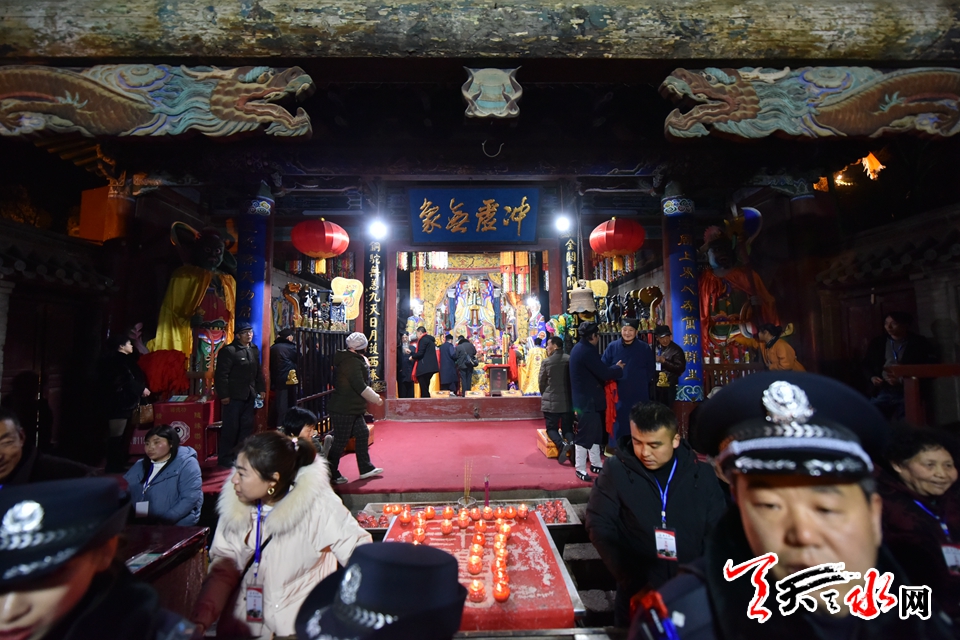 ????從昨晚開始,天水市民和外地游客涌向玉泉觀開始“上九朝觀”。 朝觀是天水當(dāng)?shù)亓鱾鲾?shù)百年的特色民俗文化活動(dòng)之一,也是玉泉觀傳統(tǒng)廟會(huì)。相傳,農(nóng)歷正月初九為玉皇大帝圣誕之日,這一天,當(dāng)?shù)孛癖姺隼蠑y幼便來(lái)這里朝拜玉皇大帝等,以祈求好運(yùn)連連、全家幸福、國(guó)泰民安。