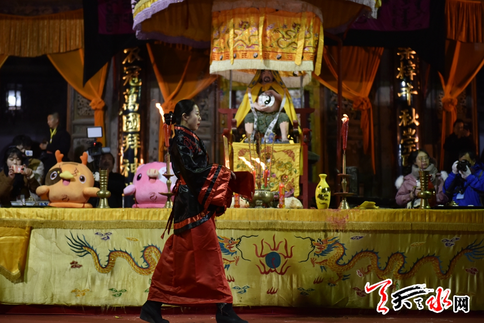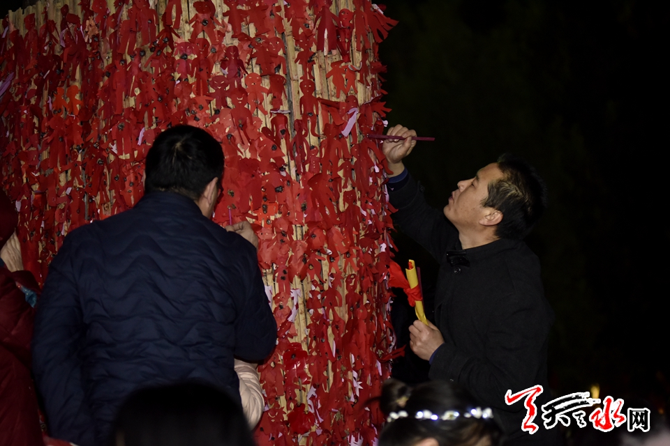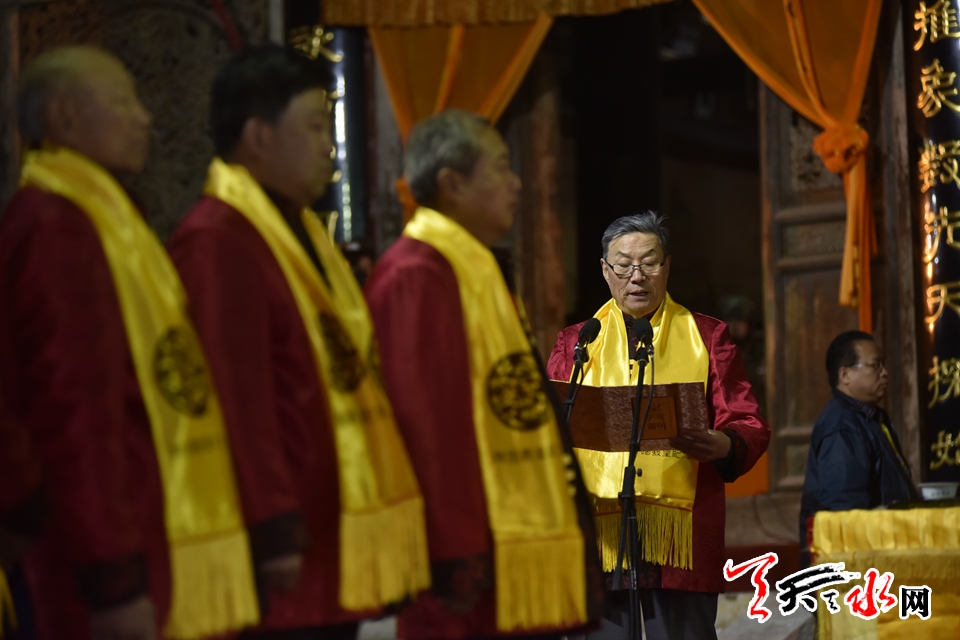 ????2月19日(正月十五)晚上,“羲皇故里”天水,花燈璀璨,伏羲城里,人潮涌動,秦腔高亢。伏羲廟迎來一年一度最為熱鬧的日子——“朝人宗”。當(dāng)晚,“ 己亥(2019)年天水伏羲廟春祭中華人文始祖太昊伏羲氏典禮”在伏羲廟先天殿月臺隆重舉行,