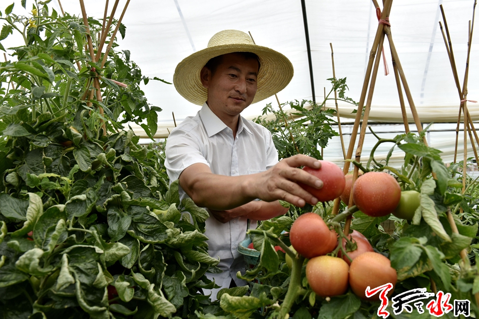 順著平坦寬敞的310國道支線來到位于秦州區(qū)西南方向的牡丹鎮(zhèn)馬家川設(shè)施蔬菜基地,鎮(zhèn)域內(nèi)主河流稠泥河貫通全境,晝夜溫差大、雨量充沛、土壤肥沃、交通便利,是較為理想的無公害蔬菜種植基地。從大路一側(cè)的綠園種植農(nóng)民專業(yè)合作社門口,記者碰到了剛運輸蔬菜歸來的社員唐玉才,他帶著記者參觀了合作社的大棚,只見成串的西紅柿掛滿了枝蔓。說話間,唐玉才摘下一顆遞到記者眼前,咬上一口,甘甜沙瓤,鮮嫩多汁?!斑@是今年引進的新品種,味道很好,產(chǎn)量也好?!碧朴癫判χf道。