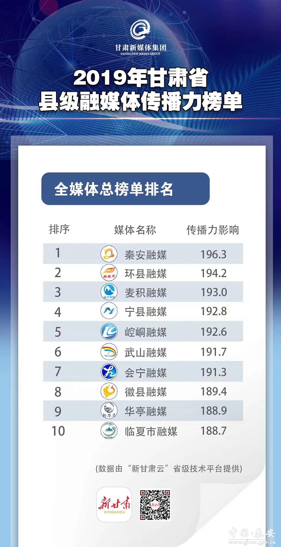 全省縣級融媒傳播力榜單出爐 秦安融媒體綜合排名位居榜首