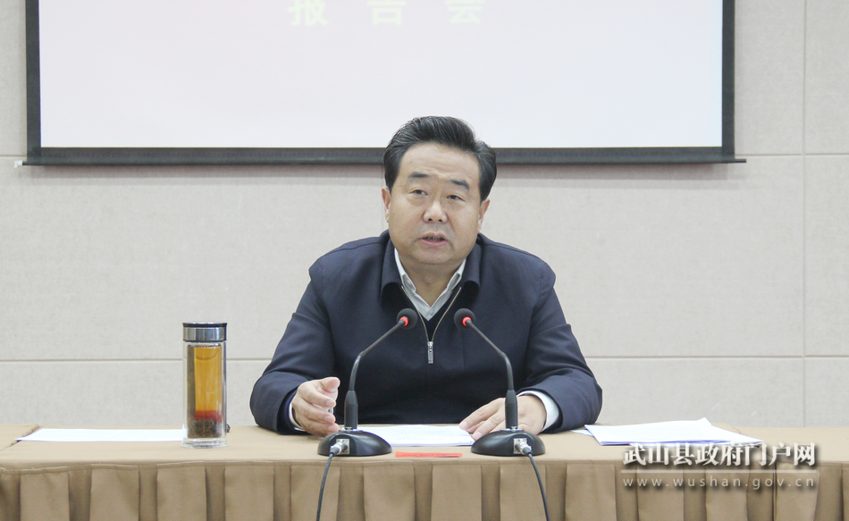 新天水訊 據(jù)武山融媒體中心消息,1月3日下午,市政協(xié)副主席、縣委書記索鴻賓為黨群部門和法檢、教育、衛(wèi)健系統(tǒng)宣講黨的十九屆四中全會精神??h委常委、宣傳部部長李菊霞主持宣講報告會。