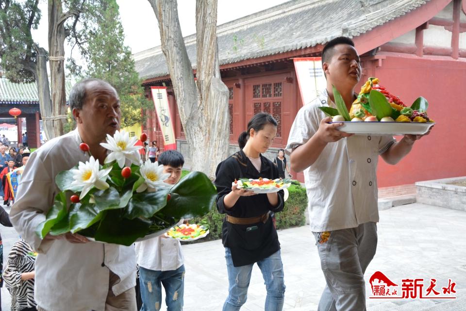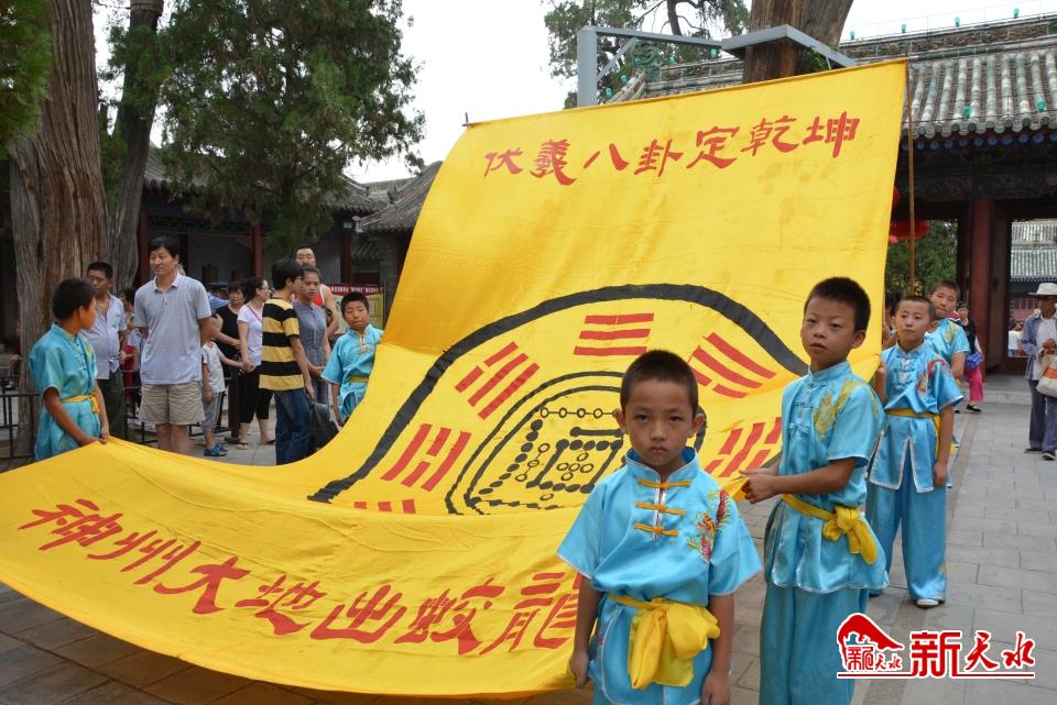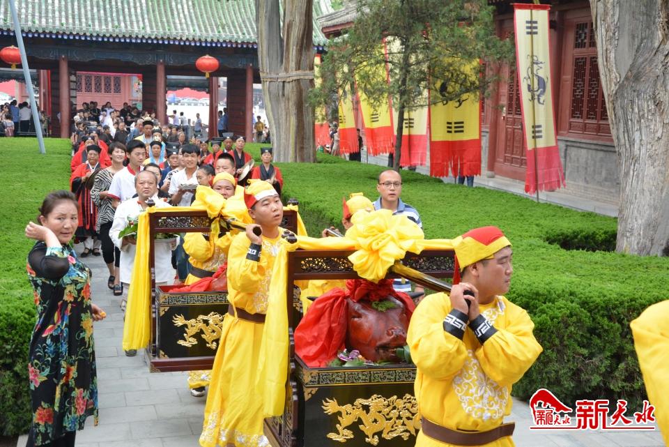 天水祭祀伏羲氏的活動是伴隨著伏羲廟的創(chuàng)建而進行的,目前能看到的史料是北宋太平興國初年,于三陽川蝸牛堡(今卦臺山)創(chuàng)建伏羲廟后便開展了有一定禮儀的祭祀活動。隨著元明清及近現(xiàn)代的發(fā)展,目前天水伏羲廟公祭伏羲大典已成為全球最大規(guī)模的官方祭祀伏羲活動。