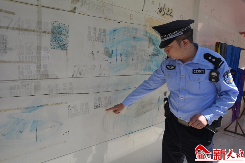 “發(fā)現(xiàn)有違法張貼或涂畫的小廣告以后,我們首先是拍照取證,后續(xù)還會(huì)對(duì)這些違法行為進(jìn)行追蹤偵辦?!表n建輝說,派出所主要是街面巡邏和視頻巡邏,巡邏中發(fā)現(xiàn)有小廣告會(huì)取證查處,發(fā)現(xiàn)粘貼小廣告的違法人員會(huì)按規(guī)定處置。另外,由于違法張貼、涂畫的行為主要在半夜實(shí)施,派出所還加大了夜間巡邏力度,確保全天候、全方位整治。