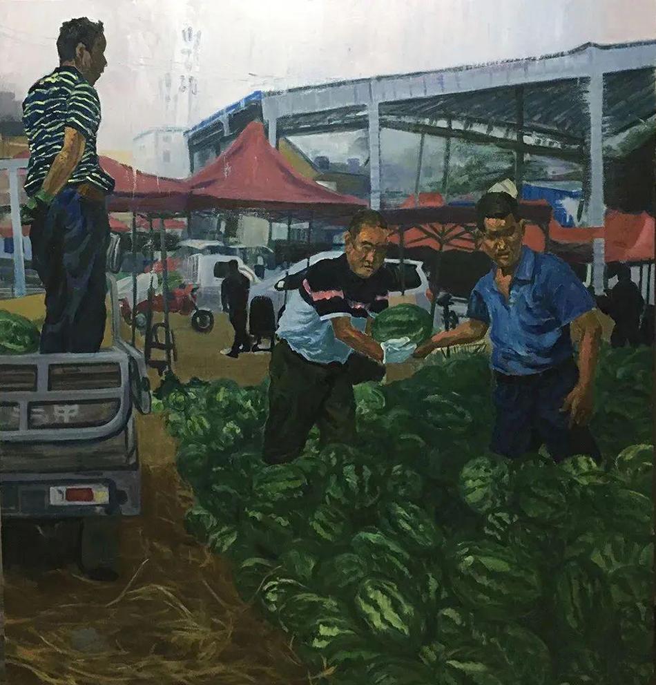 馬彥青│《碩果累累之網(wǎng)銷打包》│76cm×110cm