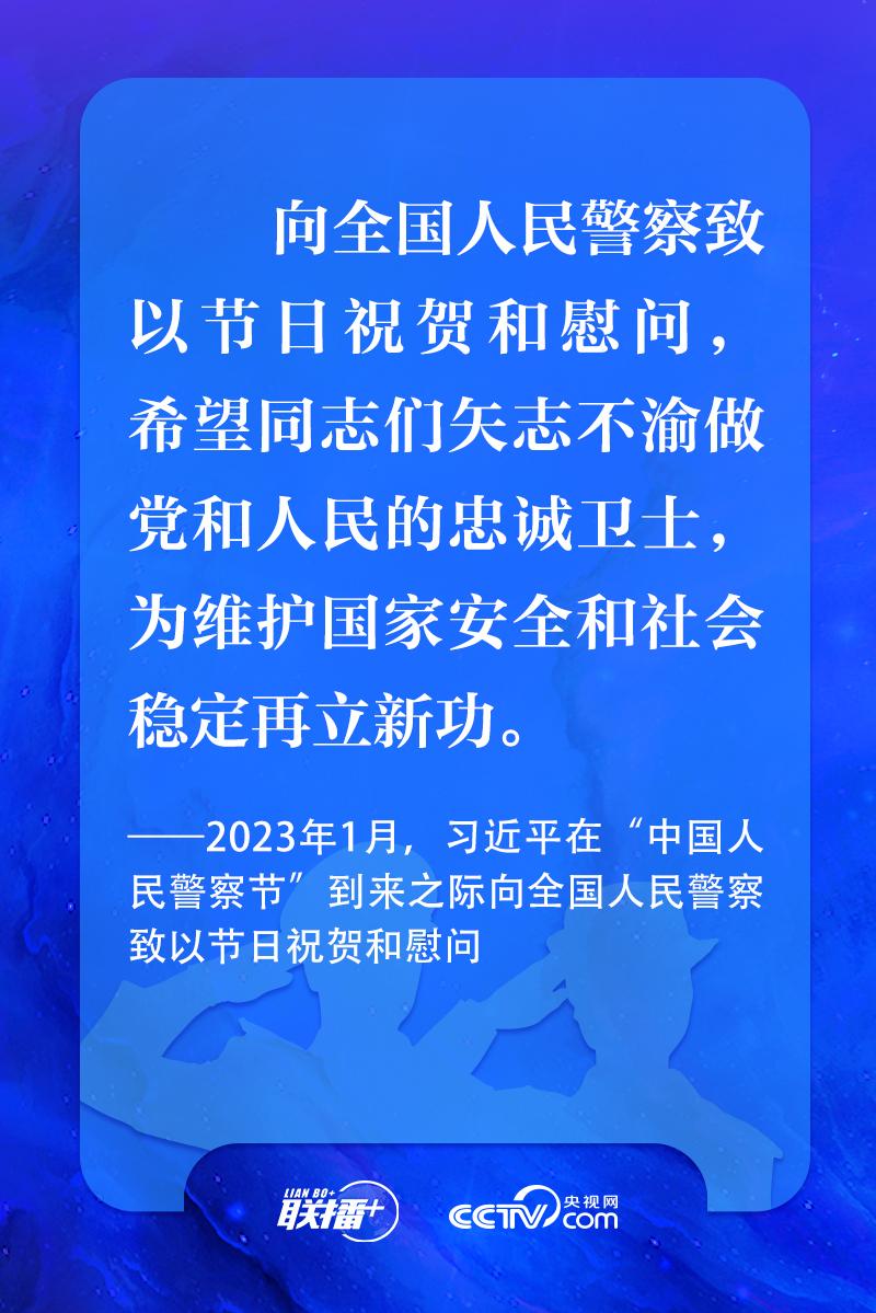 聯(lián)播+“中國人民警察節(jié)”前夕,習近平總書記代表黨中央,向全國人民警察致以節(jié)日祝賀和慰問,希望同志們矢志不渝做黨和人民的忠誠衛(wèi)士,為維護國家安全和社會穩(wěn)定再立新功。