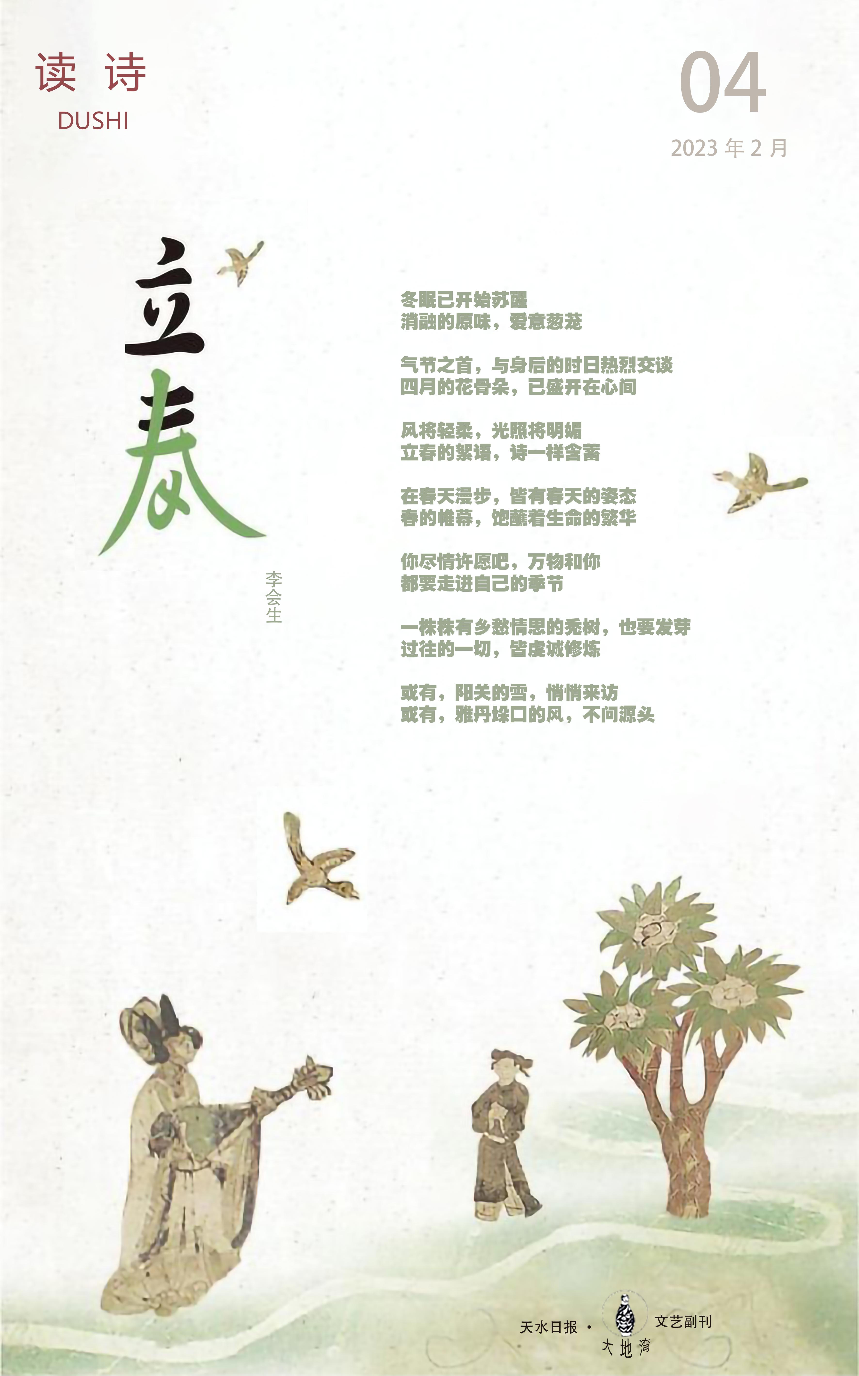 陽氣初生之時(shí),萬物至此,漸次復(fù)蘇之際天水日報(bào)·大地灣文藝副刊邀您一起品讀詩人梁積林、李會(huì)生筆下——立春,愿新的一年迎新納吉、萬事順利。