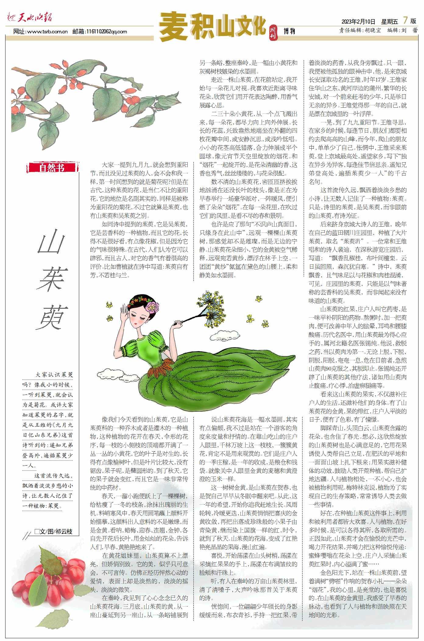 看來(lái)這山茱萸的果實(shí),不僅滋補(bǔ)莊戶人的生活,還滋補(bǔ)他們的身體。有了山茱萸花的金黃,果的緋紅,莊戶人平淡的日子,便有了色彩,有了憧憬。